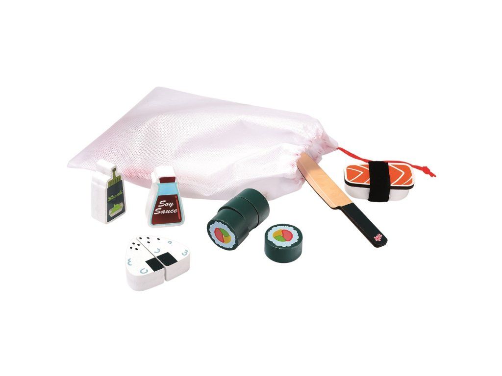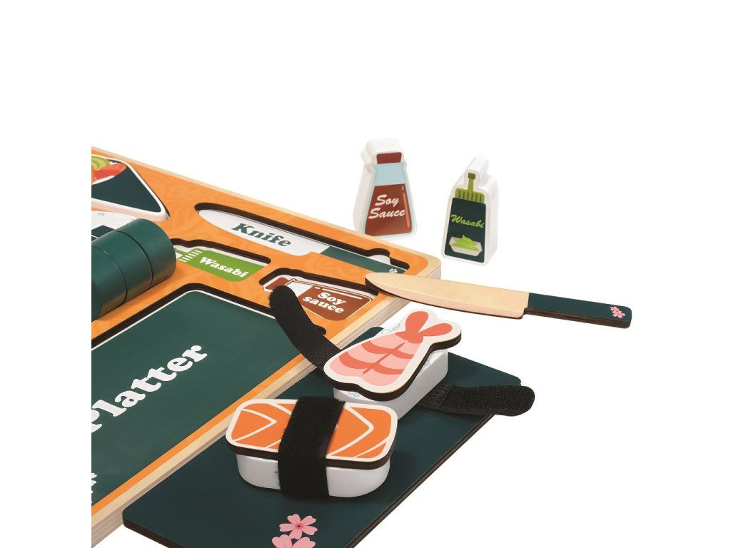 Balenie obsahuje 27 dielikov spolu s pevnou servírovacou doskou vyrobenou z preglejky. Deti si môžu svoje sushi jednoducho vytvárať, zdobiť rôznymi „ingredienciami“ a následne servírovať ako v skutočnej reštaurácii. Súčasťou sady je aj drevený nôž na bezpečné „krájanie“.