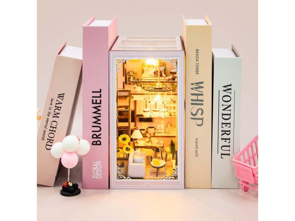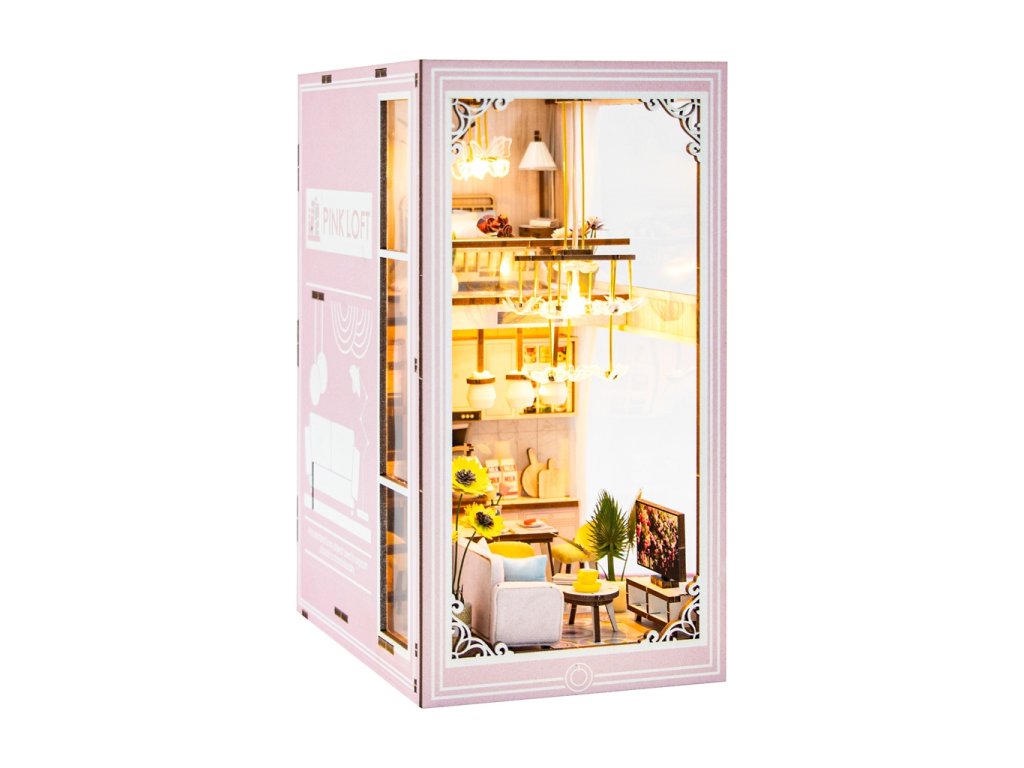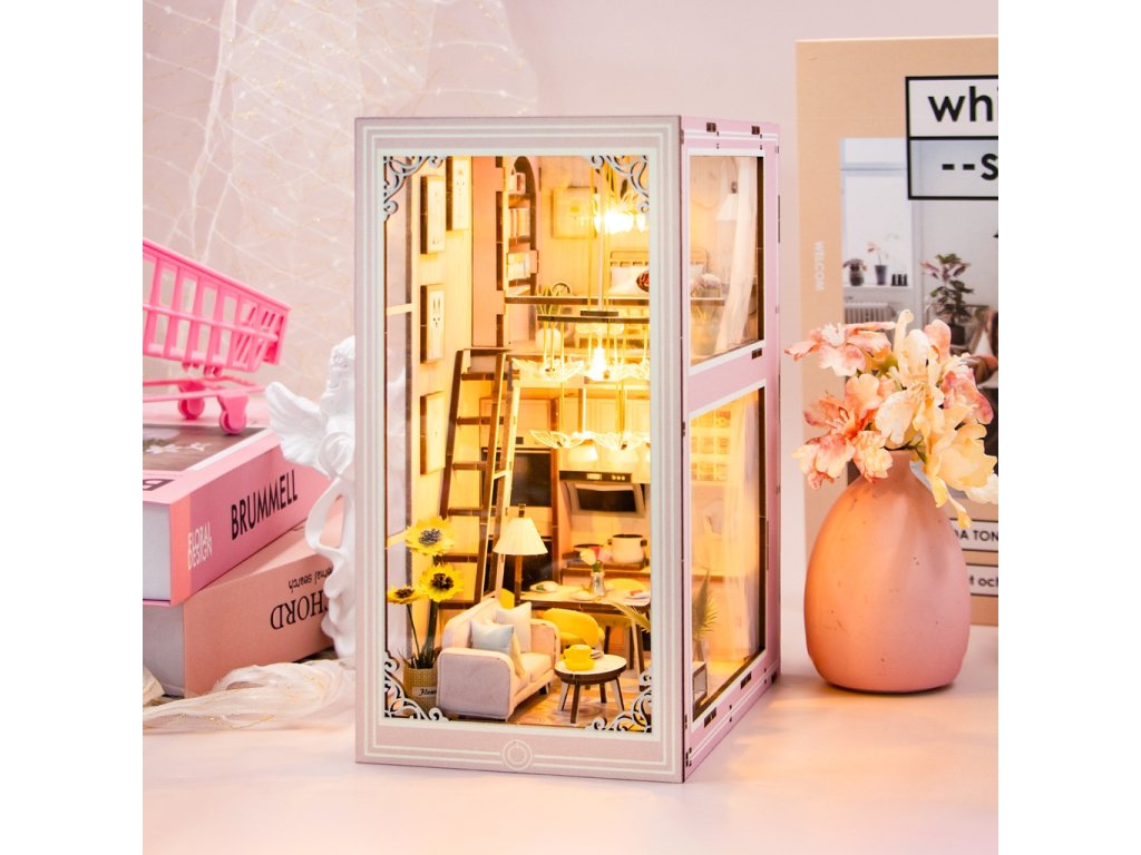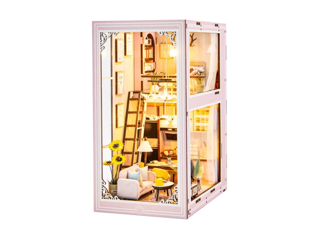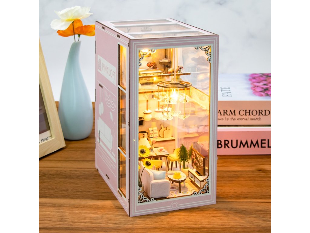 3D skladačka Opierka na knihy Miniatúra domčeka Ružový mezonet
