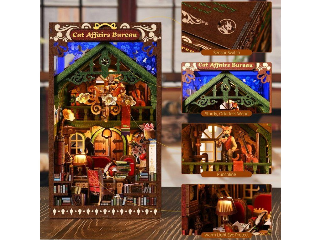 3D skladačka Opierka na knihy Miniatúra domčeka Úrad pre mačacie záležitosti