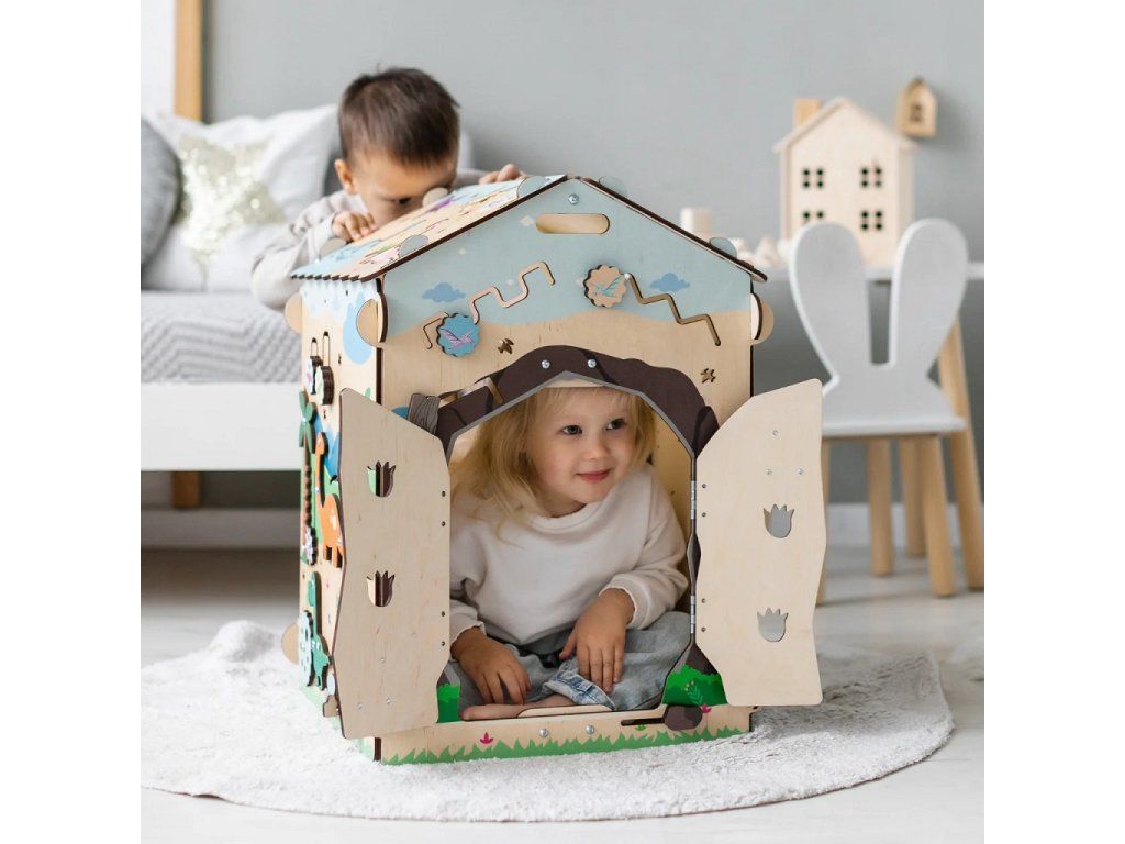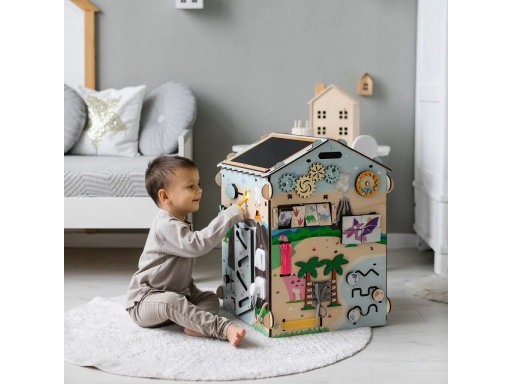 Hrací domček BusyKids House je Montessori hračka navrhnutá pre deti, ktorá prirodzeným a hravým spôsobom podporuje ich rozvoj.