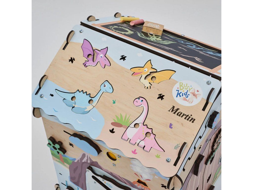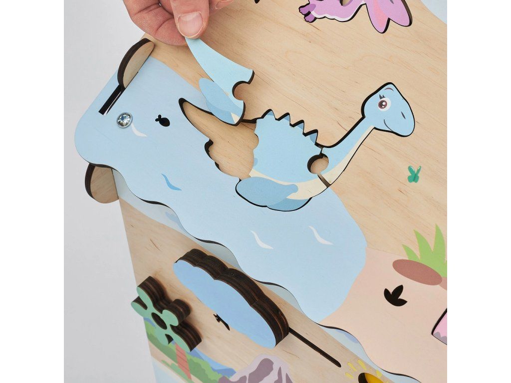 Hrací domček BusyKids House DINO je Montessori hračka navrhnutá pre deti, ktorá podporuje prirodzené a hravé učenie. Rozvíja kreativitu, jemnú motoriku a logické myslenie a stáva sa dlhodobým spoločníkom detí od batoliat až po predškolákov.