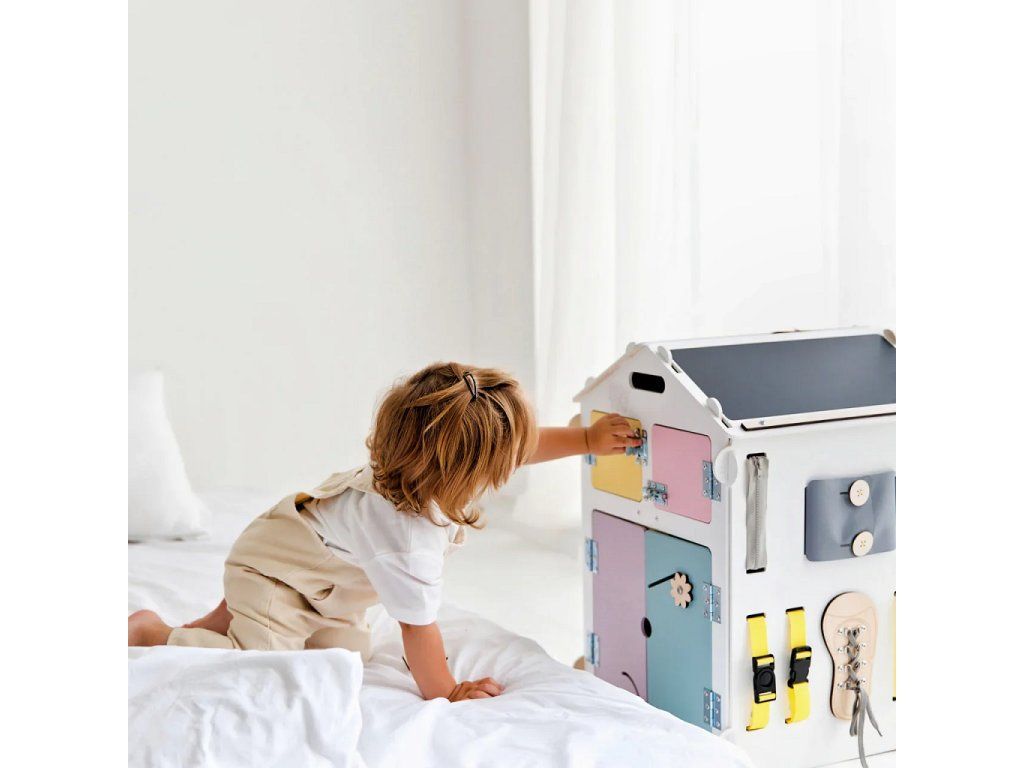 Hrací domček BusyKids je Montessori hračka ideálna pre každé dieťa. Pedagogika Montessori podporuje učenie detí zábavným a prirodzeným spôsobom, rozvíja ich kreativitu, jemnú motoriku a logické myslenie. Ak hľadáte kvalitnú hračku pre batoľa, ktorá ho bude baviť dlhé roky, stane sa jeho spoločníkom a neskôr ju využijú aj súrodenci, hrací domček BusyKids House je ideálnou voľbou.