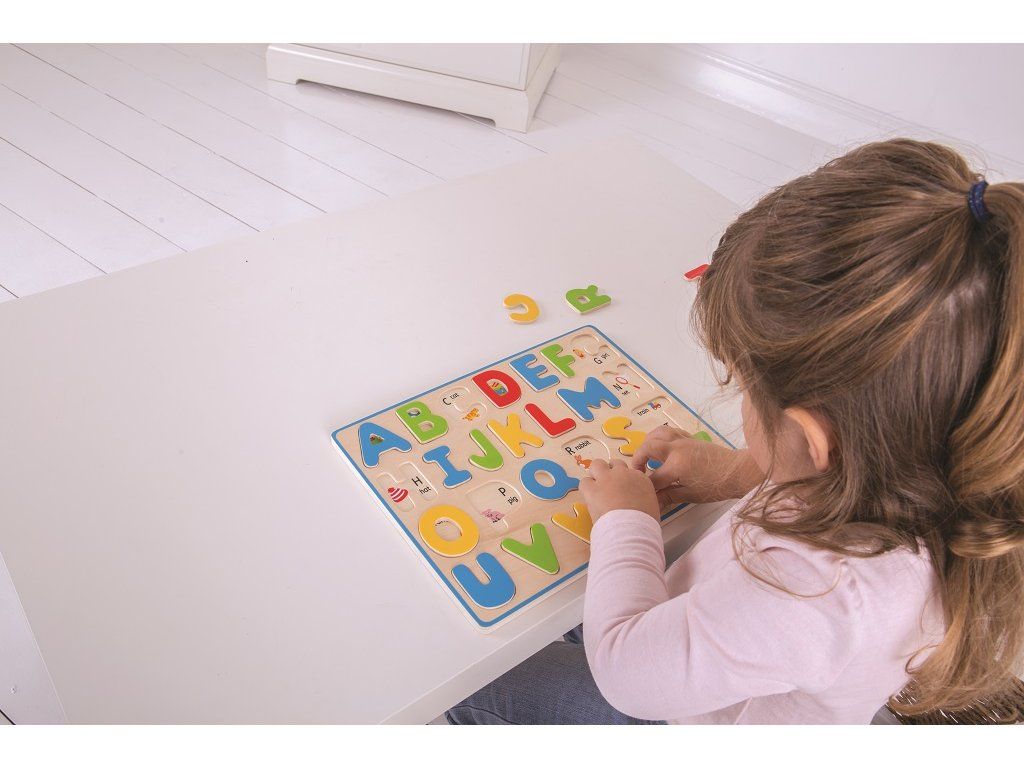 Táto neuveriteľne jednoduchá drevená doska pomáha deťom naučiť sa tvary písmen a ich správne písanie s ľahkosťou! Každé písmeno abecedy je zapustené do základnej dosky a obsahuje obrázky zvierat začínajúcich na dané písmeno.