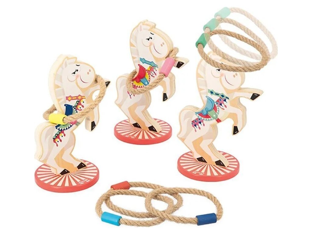 Hra pozostáva z 3 drevených koníkov a 6 hrubých lán na hádzanie. Je vhodná pre jedného aj viacerých hráčov a ideálna na hranie doma aj vonku. Vyrobená z kvalitného FSC™ certifikovaného dreva.