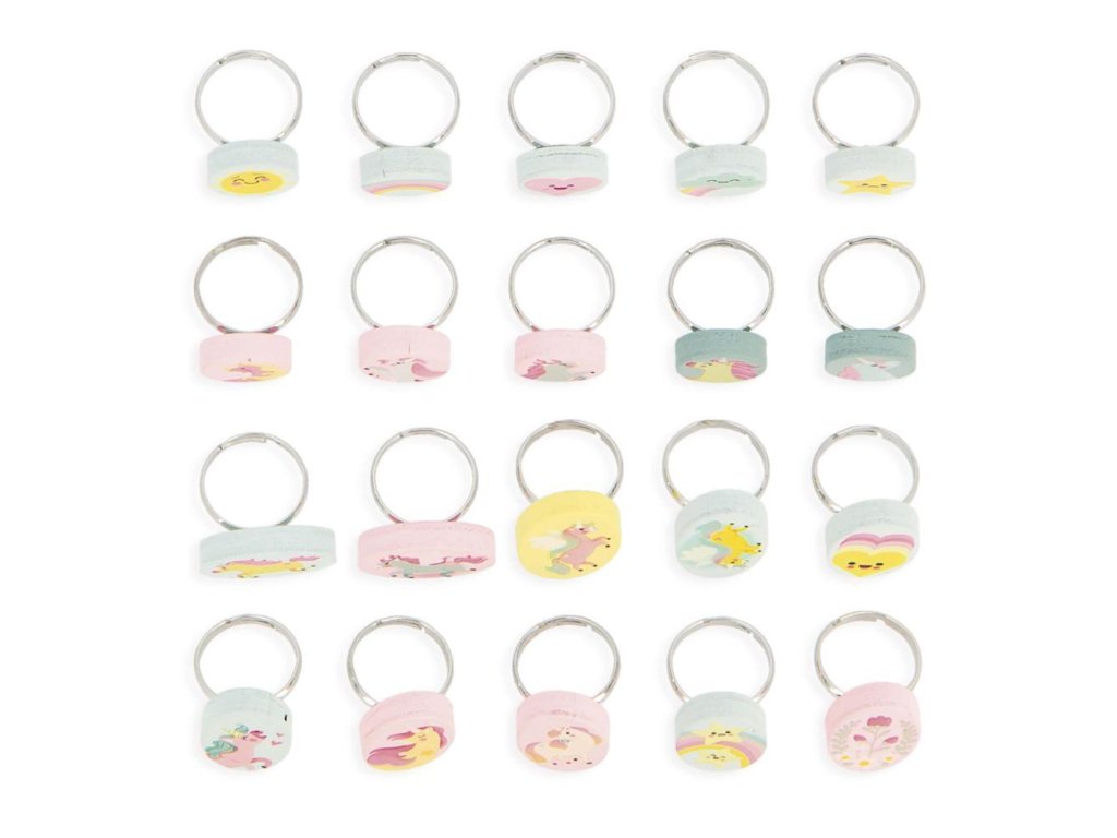 - 20 drevených prsteňov s motívom jednorožca (10 okrúhlych, 10 oválnych)