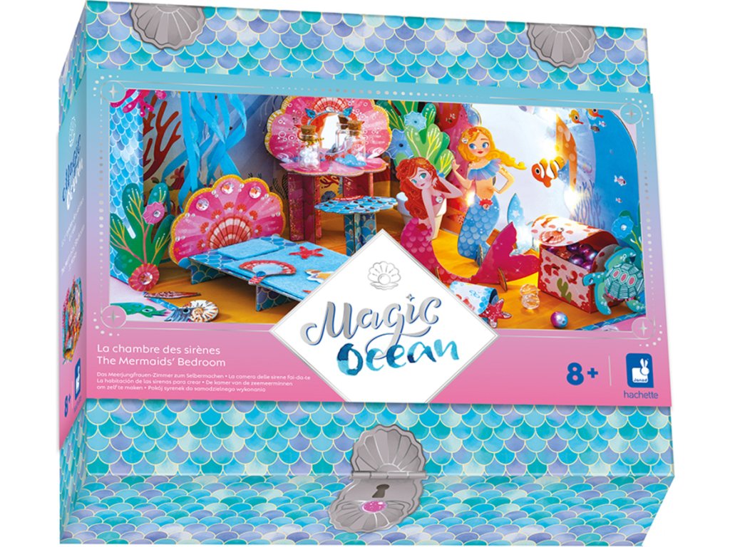 Čelo s medúzou, toaletný stolík z mušlí a truhlica s pokladom – morská panna hostí kamarátku na popoludnie pod oceánom a potrebuje pomoc pri zariaďovaní izby. Pod rukami detí ožije minisvet plný morských živočíchov, koralov a mušlí. Pevná škatuľka umožňuje nastaviť scénu – 2 časti stien sú už zhmotnené, zostáva už len zostaviť nábytok a postavy.