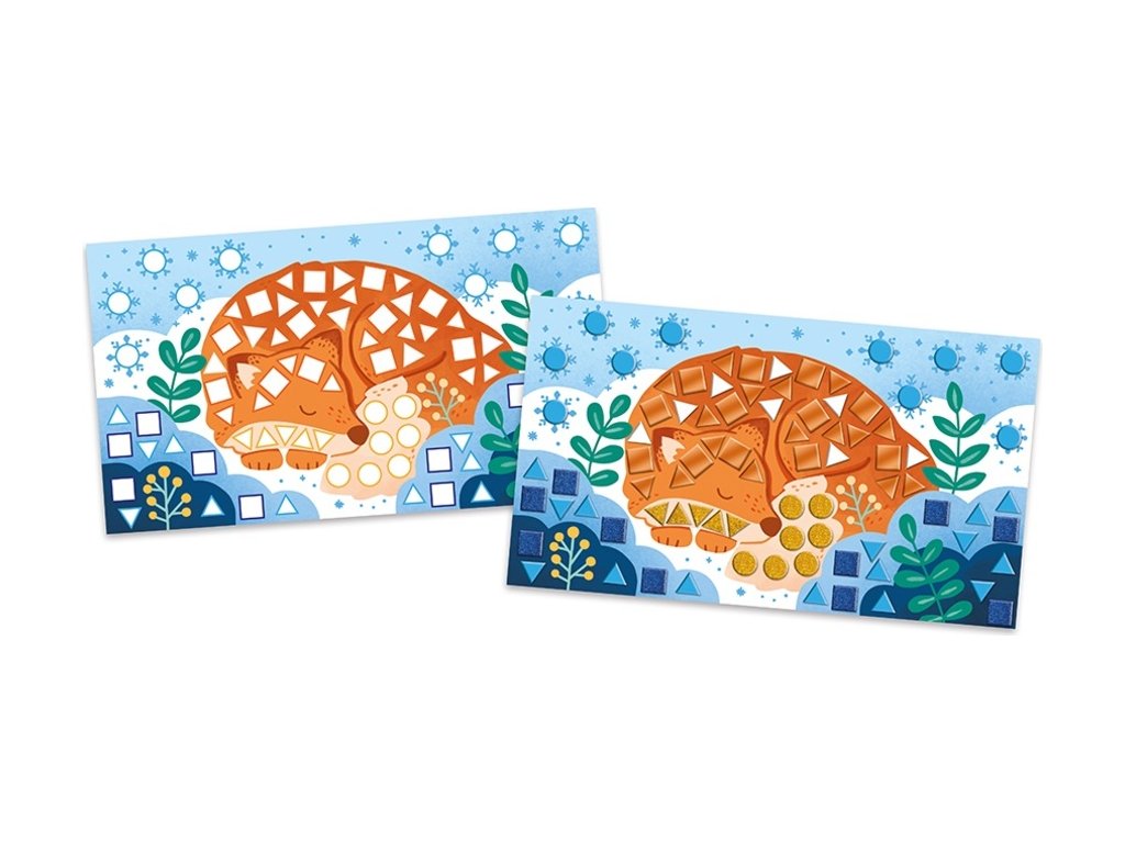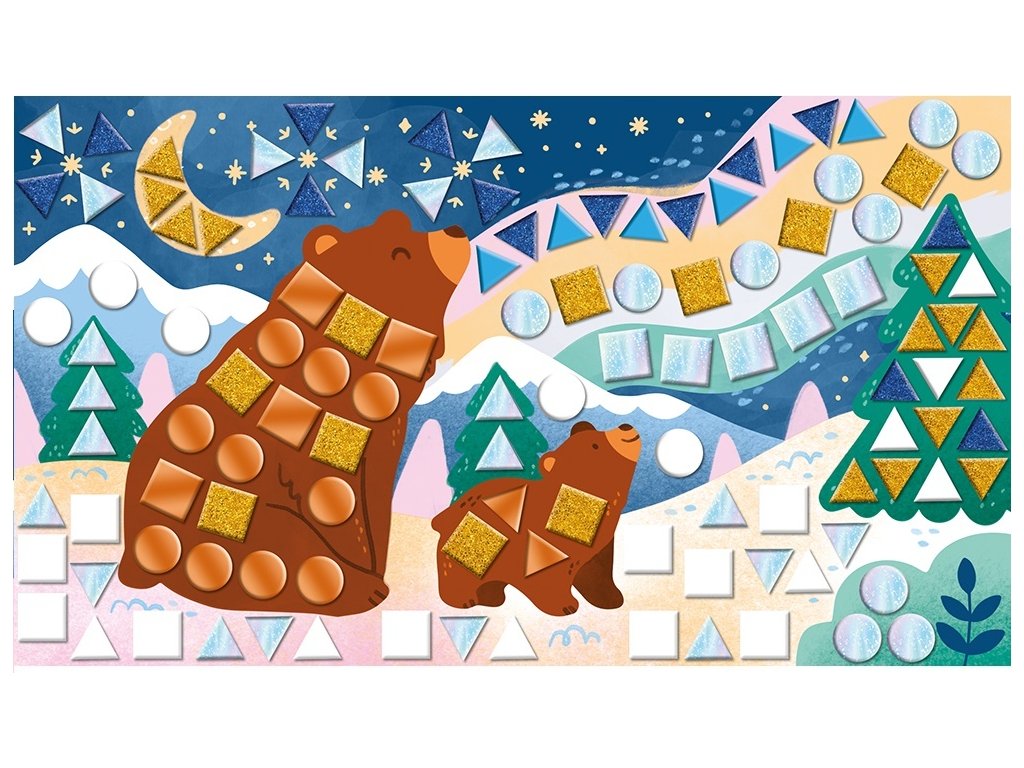 Prečo si ju vybrať: Penová textúra mozaík spríjemňuje činnosť a uľahčuje manipuláciu. Táto manuálna aktivita ponorí deti do čarovného prostredia – objavia medvedicu s mláďaťom obdivujúcu hviezdnu oblohu, driemajúcu snežnú líšku a podrastové zvieratá za úsvitu. Aktivita je ideálna na kreatívny a pokojný prejav detí. Skrášlenie každého obrazu zaberie približne 30 minút a zamestná deti na chvíľku oddychu, pričom zahreje vaše zimné dni.