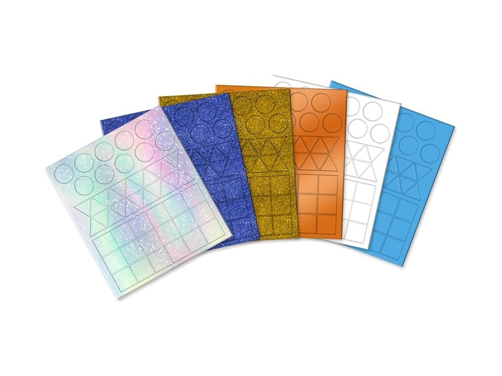 - 6 predrezaných penových mozaikových dosiek s rôznymi vizuálnymi efektmi: matné, trblietavé, holografické a metalické
