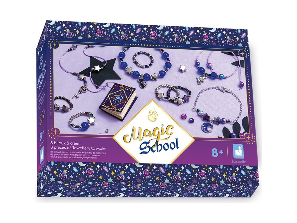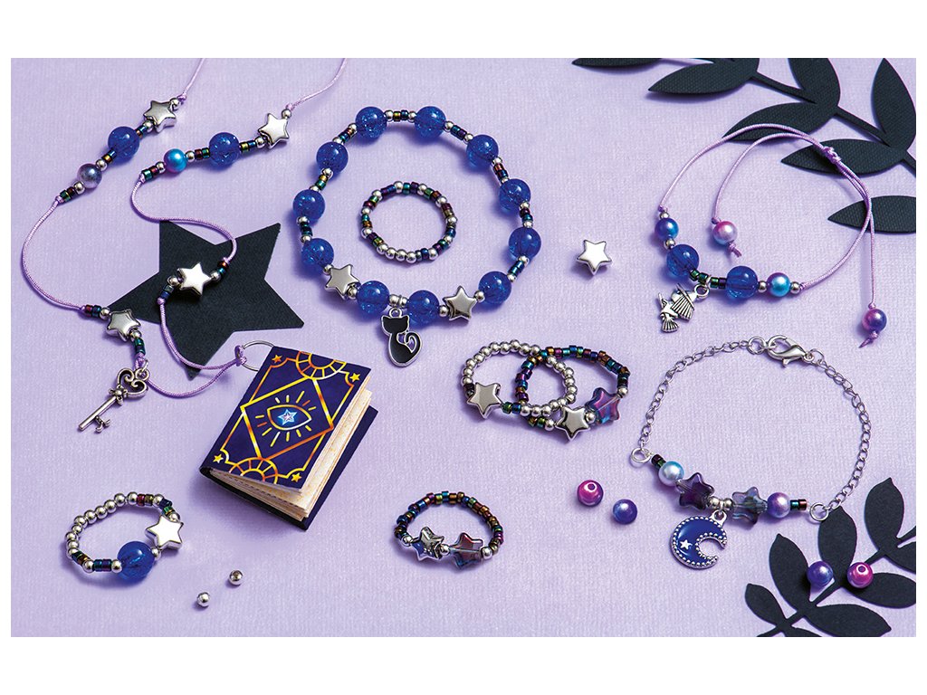 Vytvorte čarodejnícke učňovské šperky! S touto súpravou na výrobu šperkov môžu deti od 8 rokov vyrobiť 8 výtvorov na tému mágie: 4 prstene, 3 náramky a 1 náhrdelník. Tieto šperky so svojím podmanivým šarmom a perleťovým efektom ponoria najmenších do sveta kúziel a záhad. Výrobou vlastných čarodejníckych šperkov deti rozvíjajú svoju kreativitu aj šikovnosť.