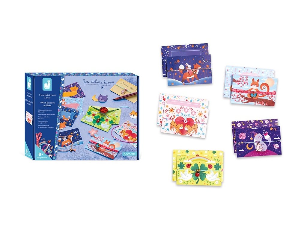 Niečo si želajte! S touto súpravou na vytváranie náramkov si môžu deti vo veku 8 a viac rokov vyrobiť vlastné šperky, ktoré si ponechajú alebo dajú ako náramky priateľstva. Princíp? Želajte si tak, že náramok uzatvoríte zauzlenými článkami, a keď sa rozopnú, prianie je splnené! Malí kreatívni ľudia môžu ponúknuť svojich 5 náramkov svojim blízkym, aby im zaželali šťastie, priateľstvo alebo dokonca kúzlo.