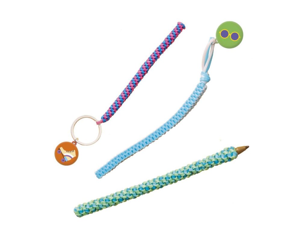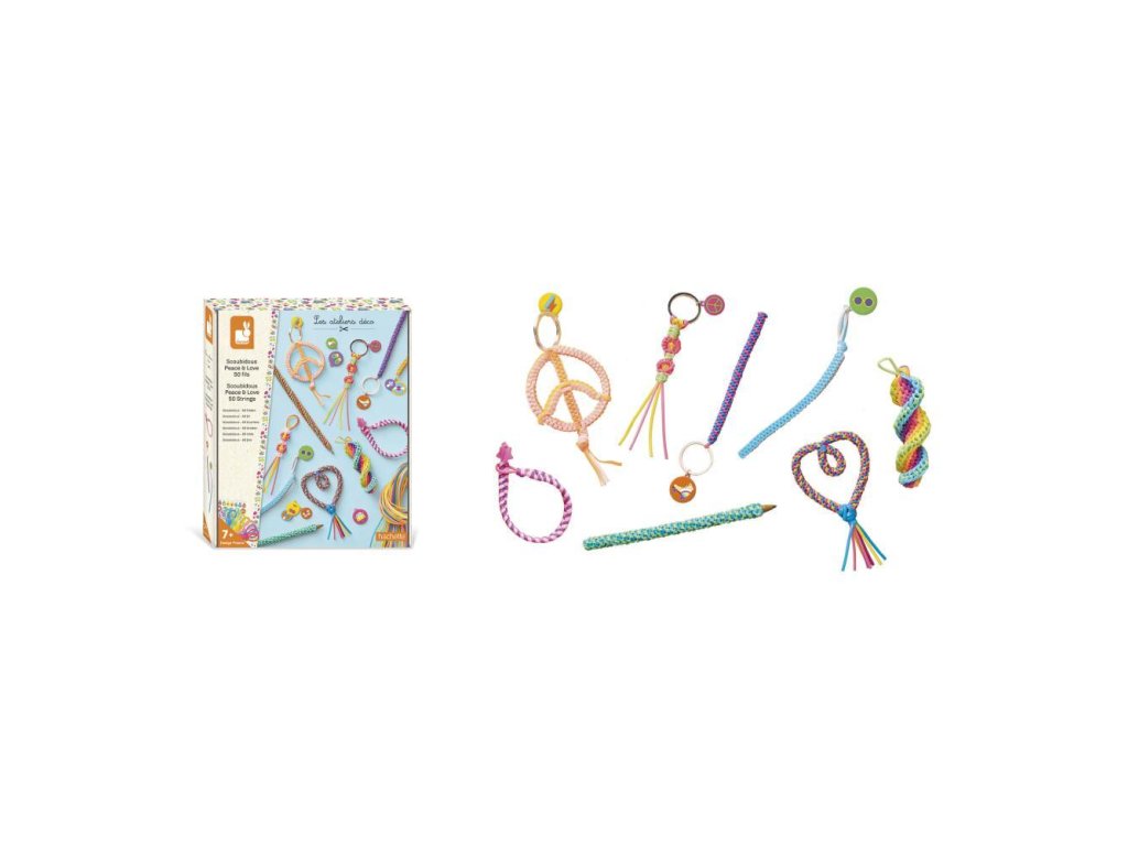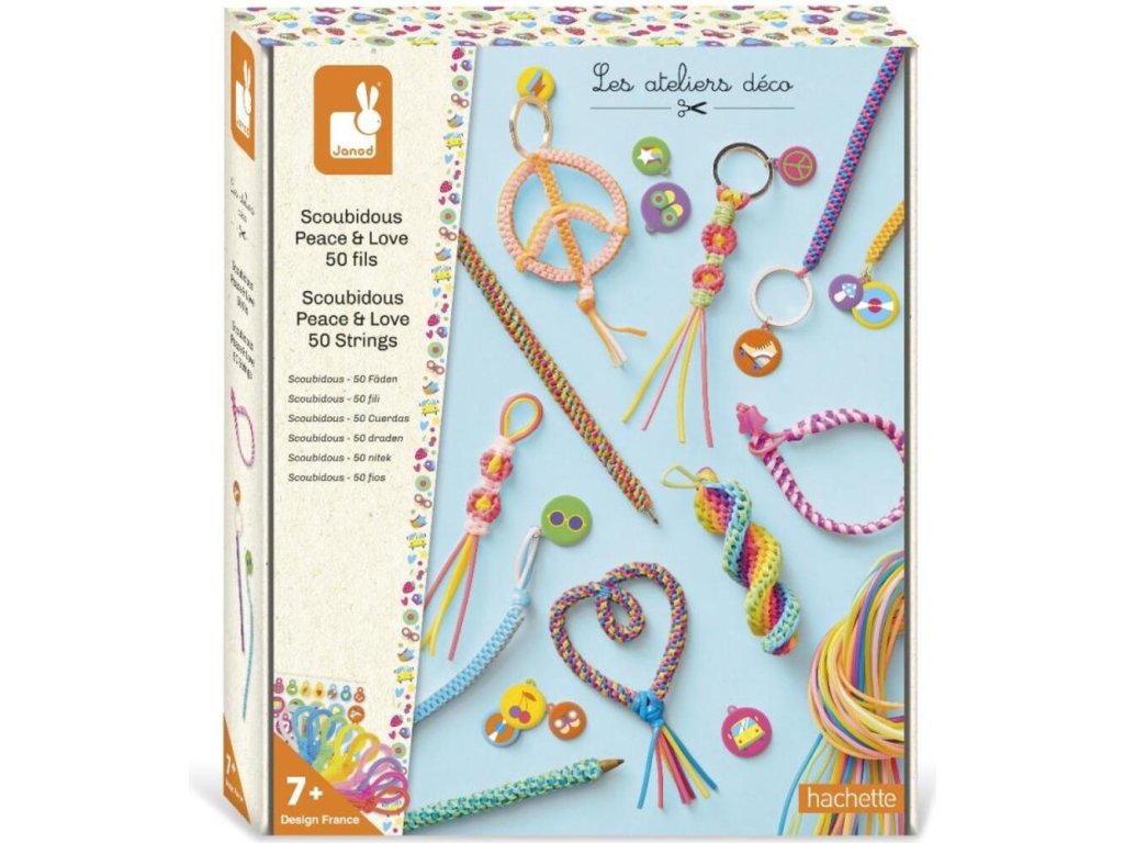 Scoubidoubidous! Táto kreatívna sada umožňuje vyrobiť 8 rôznych predmetov s tematikou lásky. Výroba náramkov so svojimi progresívnymi úrovňami obtiažnosti je kompletne ručnou prácou. Sada obsahuje dostatok materiálu na výrobu 11–14 výtvorov, vrátane kľúčeniek, rôznych ozdôb a náramkov.