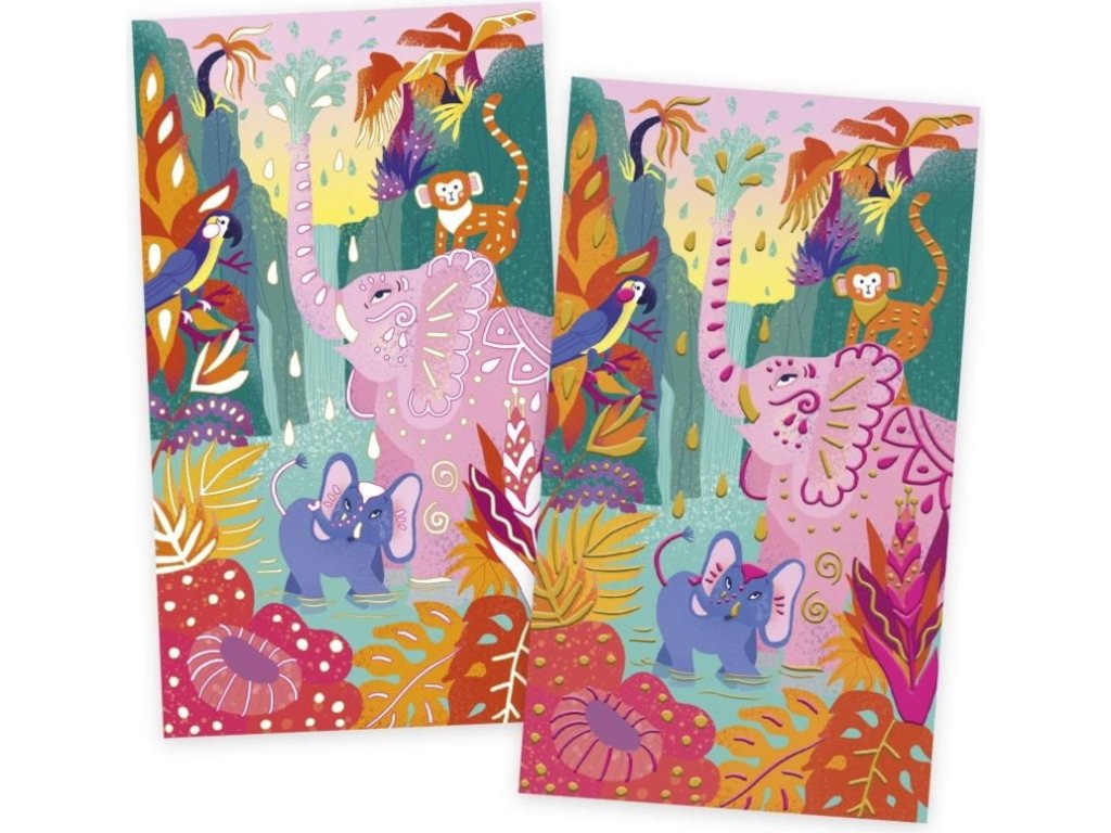 Táto aktivita pomáha rozvíjať presnosť, jemnú motoriku, sústredenie a predstavivosť detí. S touto sadou si mladí umelci môžu dotvoriť krásne džungľové obrazy vhodné na dlhodobé vystavenie alebo ako dekoráciu.