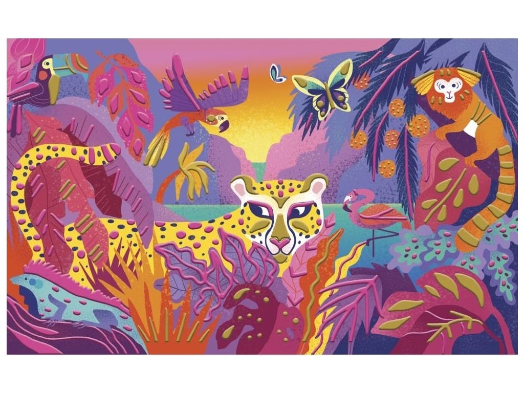 S touto kreatívnou sadou pre deti od 7 rokov vzniknú 3 obrazy s nádhernou farebnou atmosférou. Ponorte sa do srdca džungle a vytvorte živé 3D scény!