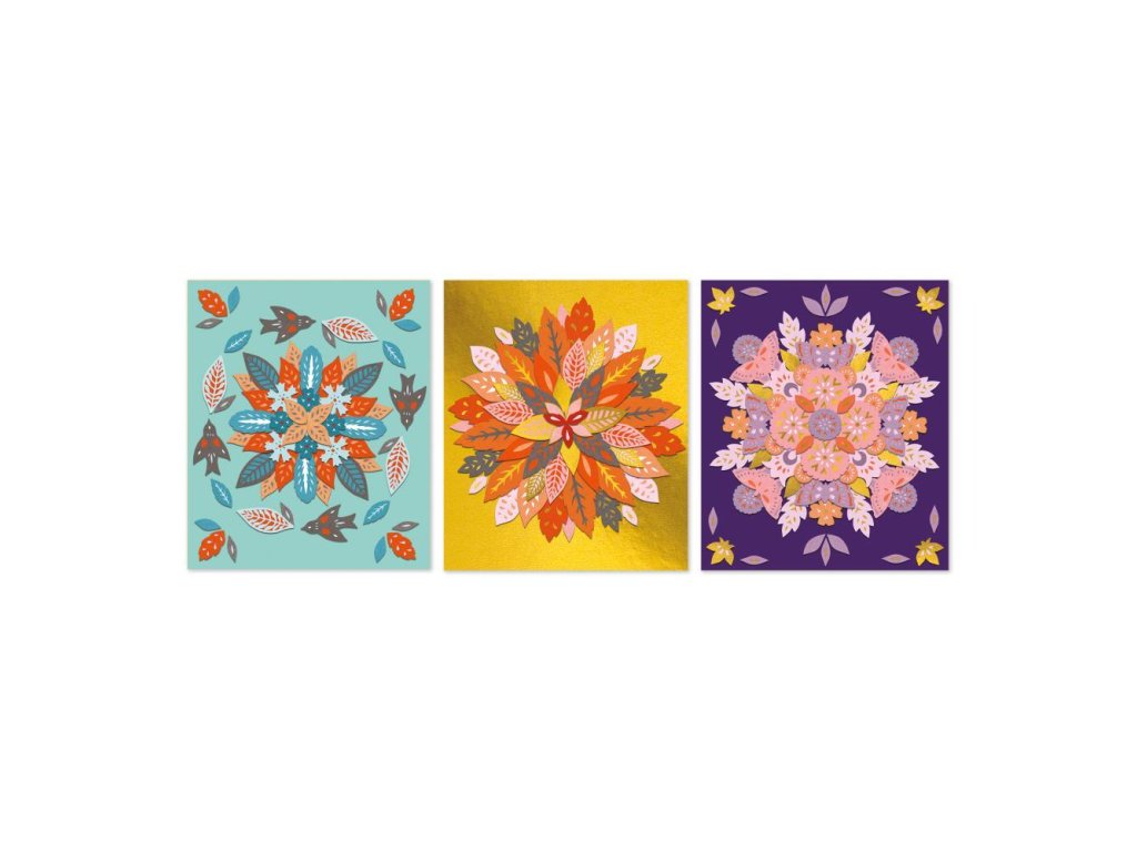 Skvelý tip na darček pre milovníkov jesennej prírody! Táto sada umožňuje deťom vo veku 7 rokov a viac vytvoriť 3 krásne obrazy s mandalami inšpirovanými prírodou.