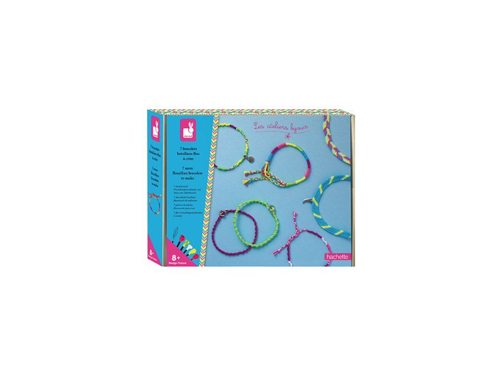 Obsah sady: pokyny a materiály na výrobu 7 neónových brazílskych náramkov