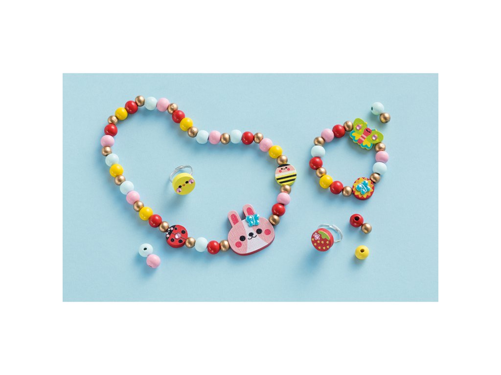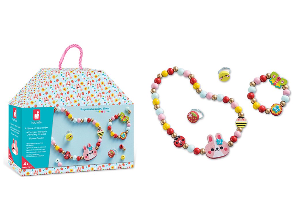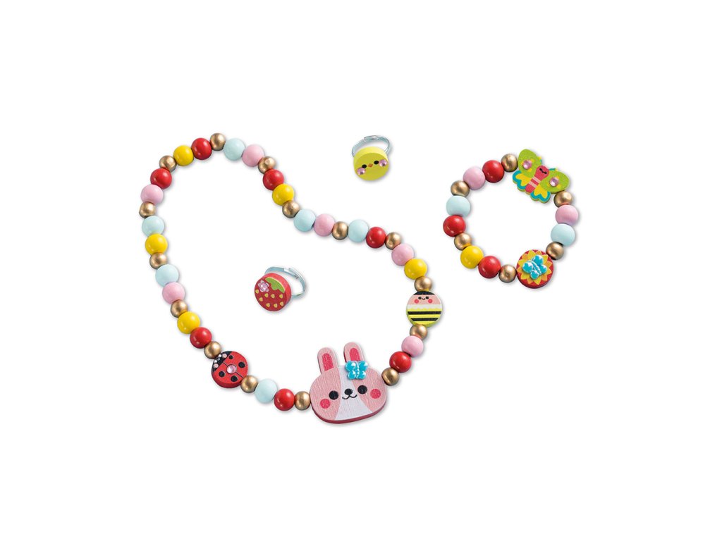 Prvý workshop tvorby šperkov pre deti! S touto kreatívnou súpravou si deti od 4 rokov ľahko vyrobia peknú súpravu: 2 prstene, 1 náhrdelník a 1 náramok. Tvorenie týchto 4 drevených šperkov na tému záhrady je rovnako zábavné, ako aj ich nosenie!