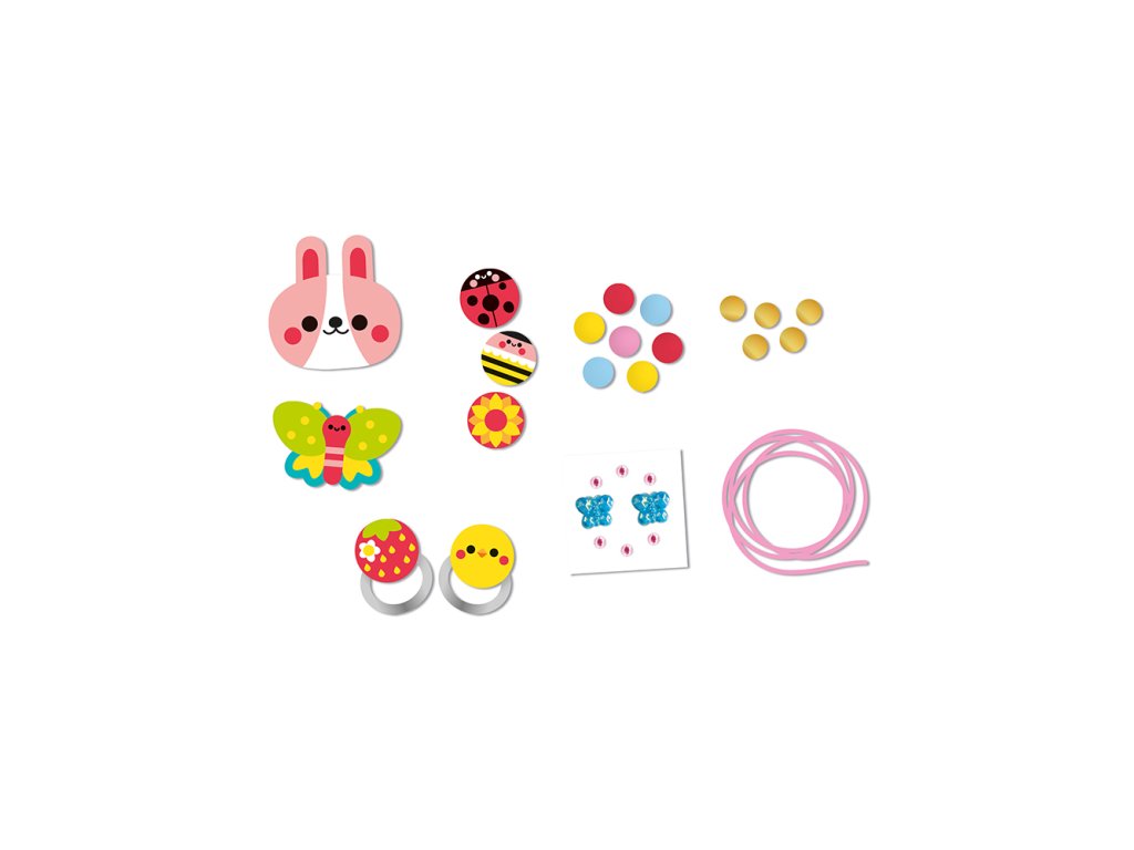 Kreatívna súprava na výrobu šperkov Sweets francúzskej značky JANOD umožňuje deťom vytvoriť celkom 5 šperkov: náhrdelník, 2 náramky a 2 prstene.