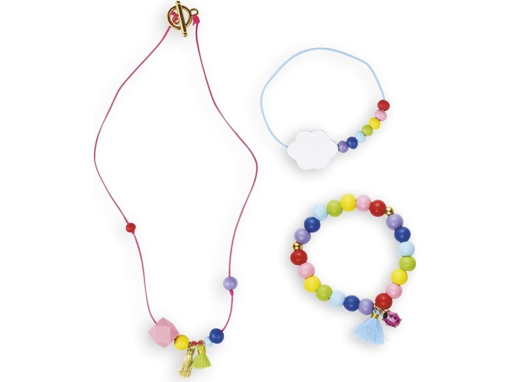 Kreatívna súprava My šperkovnica Fairies francúzskej značky JANOD vám umožní vytvoriť celkom 7 šperkov: 2 náhrdelníky, 3 náramky a 2 prstene.