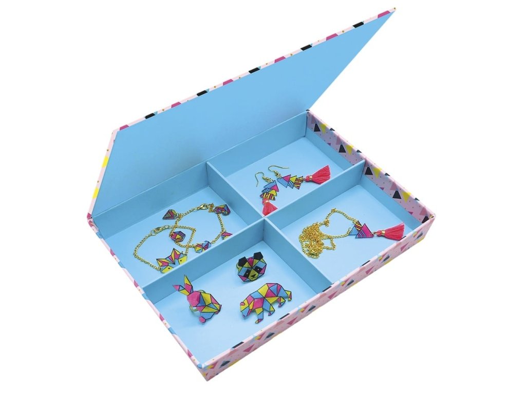 Táto súprava umožňuje deťom vytvoriť 7 šperkov: 2 náramky, 1 náhrdelník, 1 pár náušníc a 3 prstene. Podľa priloženého návodu môžu deti krok za krokom vyrobiť svoje vlastné originálne šperky.
