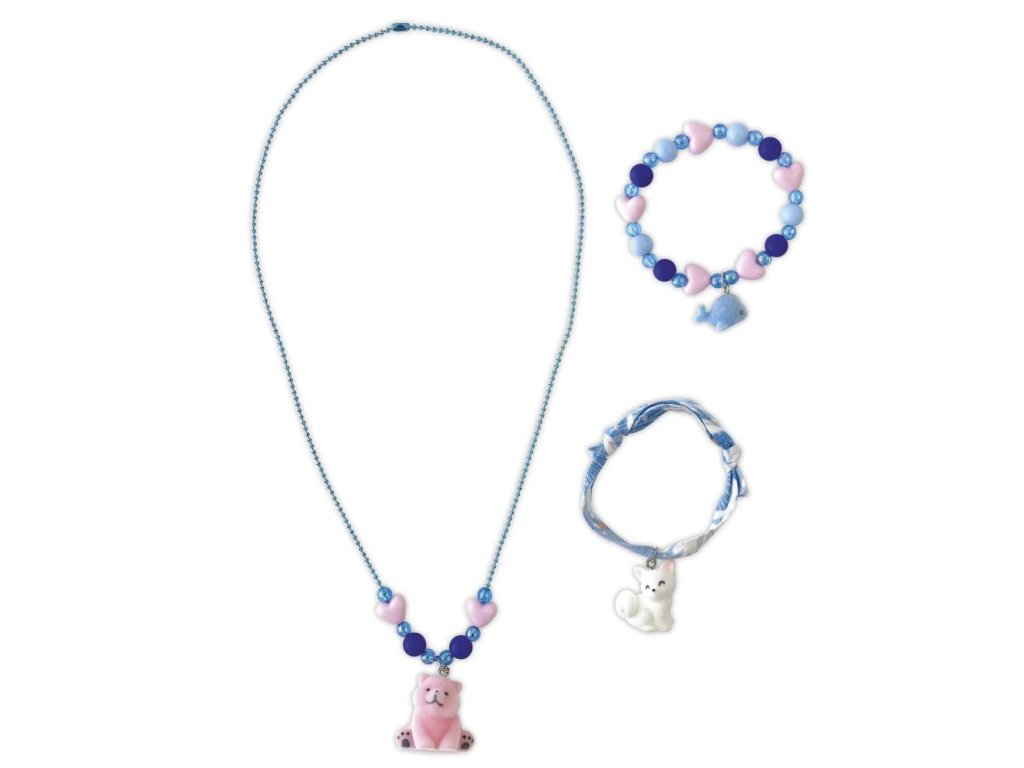 Táto zábavná súprava obsahuje všetko potrebné na výrobu 2 náramkov a 1 náhrdelníka s rozkošnými zamatovými príveskami: ľadovým medveďom, líškou a veľrybou. Skvelý tip na darček, ktorý sľubuje hodiny tvorivej zábavy a výsledné šperky môžu deti s hrdosťou nosiť alebo darovať.