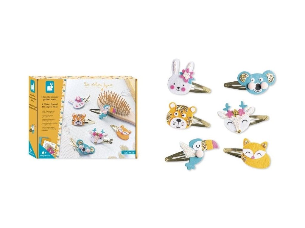 Kreatívna súprava Janod – Trblietavé zvieracie sponky do vlasov