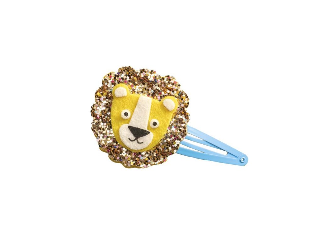 Poďte do džungle! Vďaka tejto kreatívnej sade si deti od 5 rokov môžu vyrobiť 6 trblietavých sponiek do vlasov s motívom zvierat z džungle: slona, leva, leoparda, tukana, leňochoda a opice. Súprava je zabalená v roztomilej potlačenej škatuľke s praktickým tvarom kufríka, ktorý je ľahko prenosný.