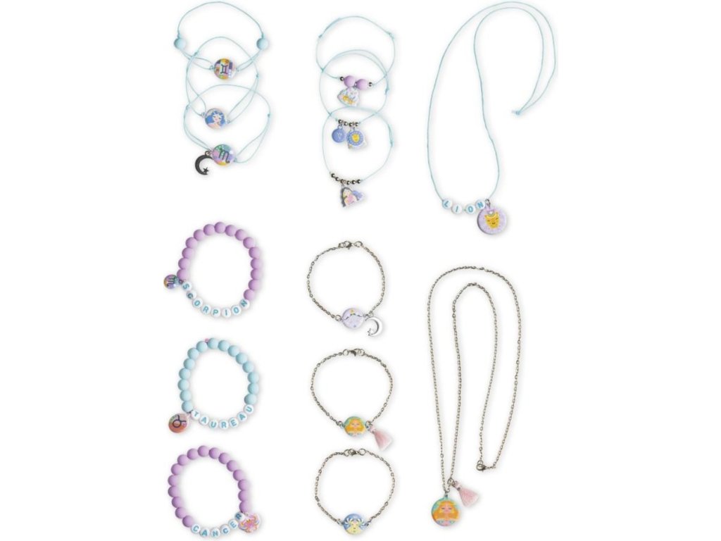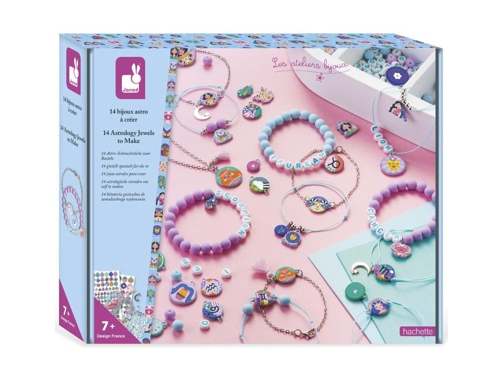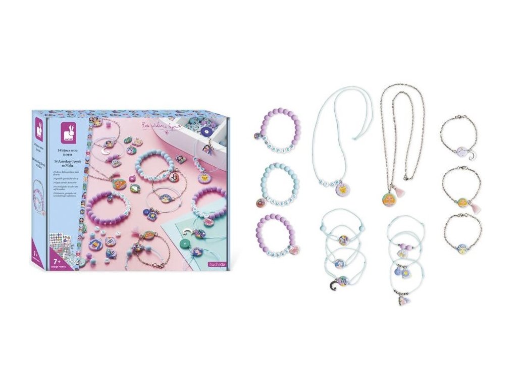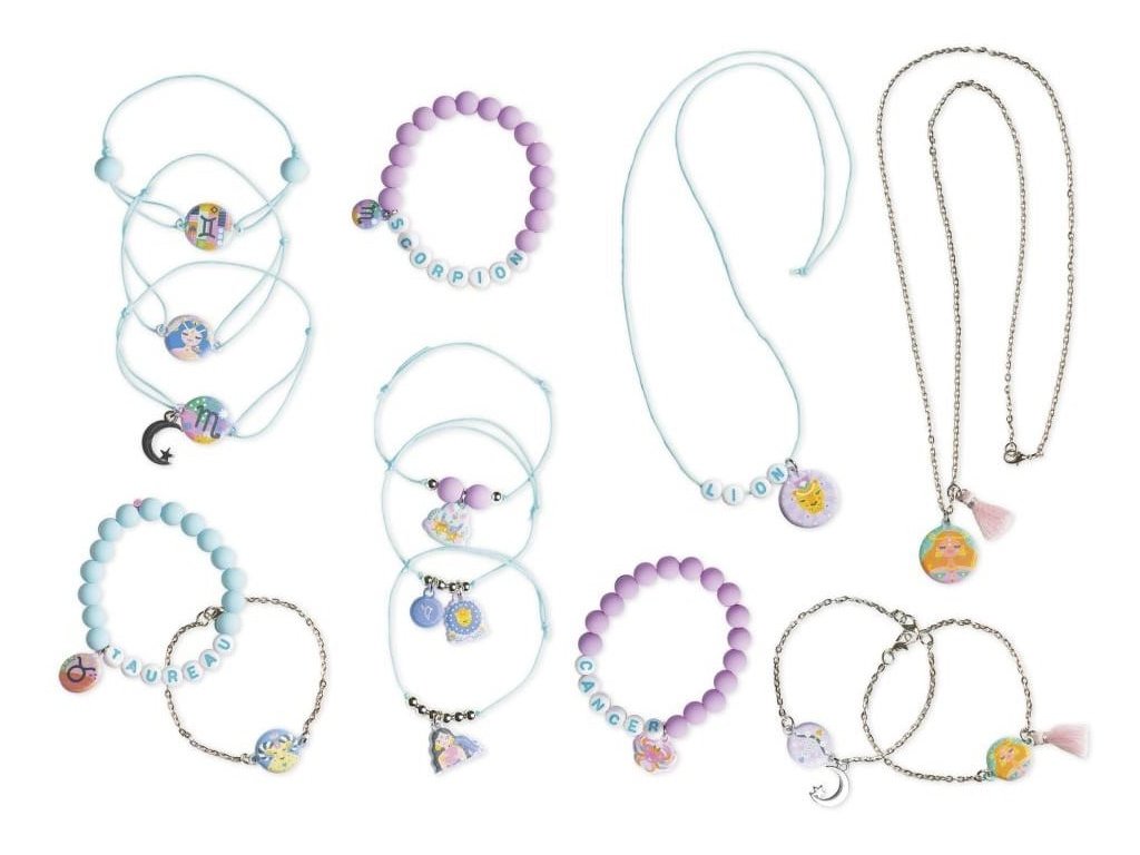 Šperky s osobitosťou! S touto remeselnou súpravou môžu deti vo veku od 7 rokov vyrobiť 14 šperkov s motívom astrologických znamení a buď si ich nechať pre seba, alebo ich ponúknuť svojim priateľom. Zahrnuté je každé znamenie zverokruhu.