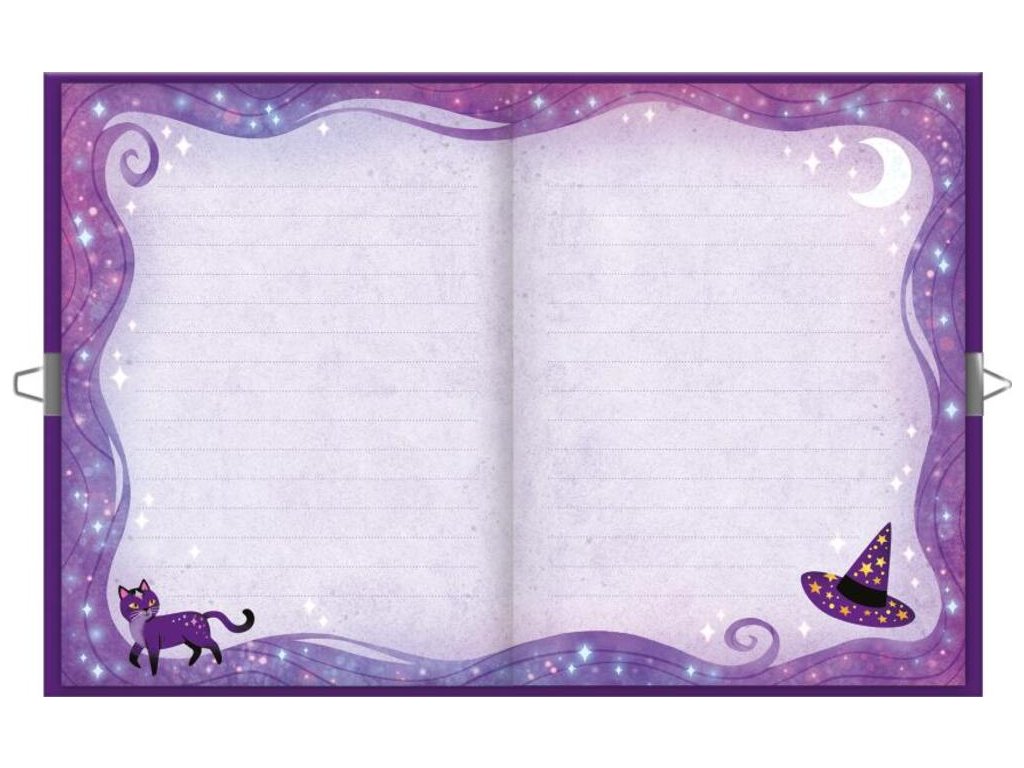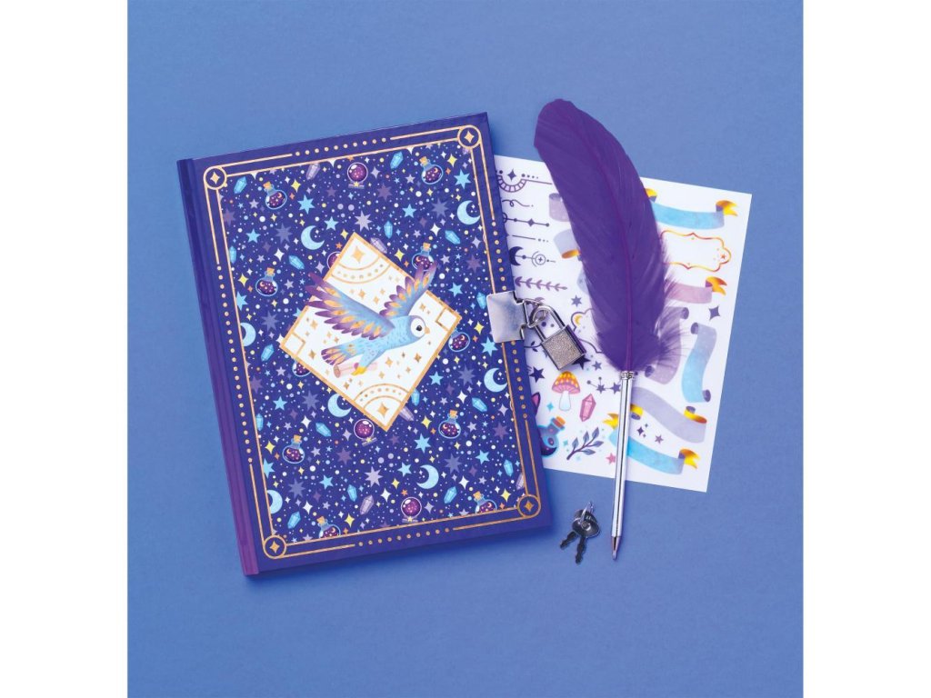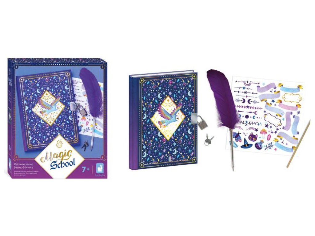Každý pravý čarodejnícky učeň potrebuje tajnú knihu kúziel! S touto kreatívnou sadou pre deti od 7 rokov sú tajomstvá a kúzla dobre zachované! S ich 96-stranovým tajným zápisníkom si môžu zapísať ingrediencie svojich čarovných elixírov alebo si nakresliť fantastické stvorenia. Nie je to len diár, je to ideálna tvorivá činnosť, ako sa vyjadriť neobmedzene vďaka obtlačkovému hárku a peru, ktoré sú súčasťou balenia! Fialové farby tohto tajného grimoáru pozývajú k mágii a čarovaniu!