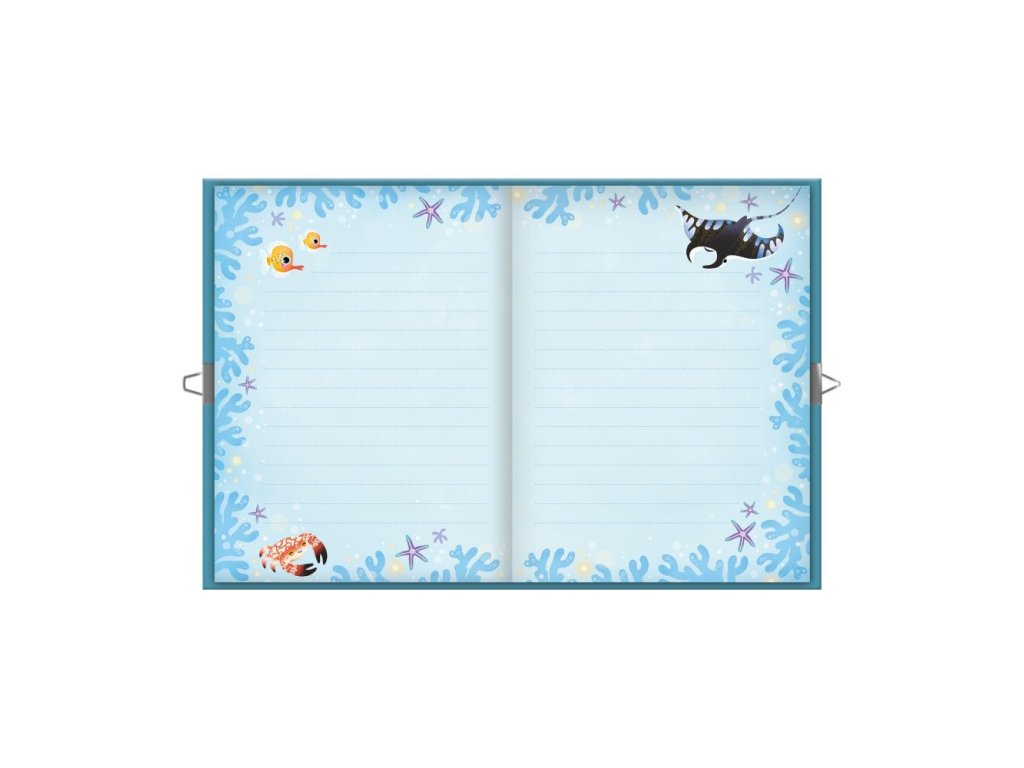 Creative Set Secret Notebook Magical Ocean od francúzskej značky JANOD je ideálny pre malé kreatívne duše. Zápisník s visiacim zámkom a dvoma kľúčmi sa môže stať tajným denníkom, miestom na dôležité poznámky alebo skicárom. Písanie je zábavné, pútavé a zároveň upokojujúce.