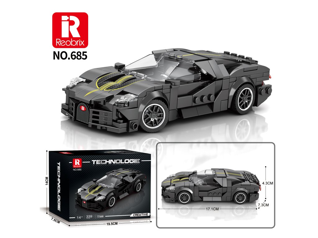 Staňte sa konštruktérmi jedného z najelegantnejších a najvzácnejších automobilov sveta! Model Bugatti La Voiture Noire od značky Reobrix spája luxus, silu a technickú precíznosť.