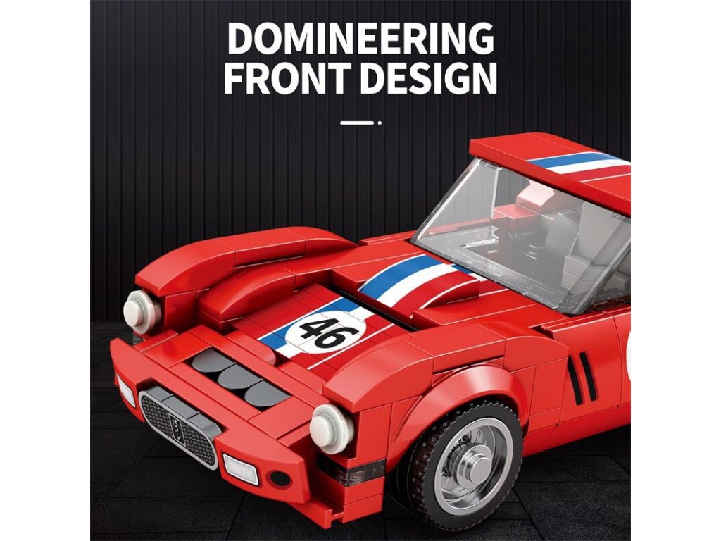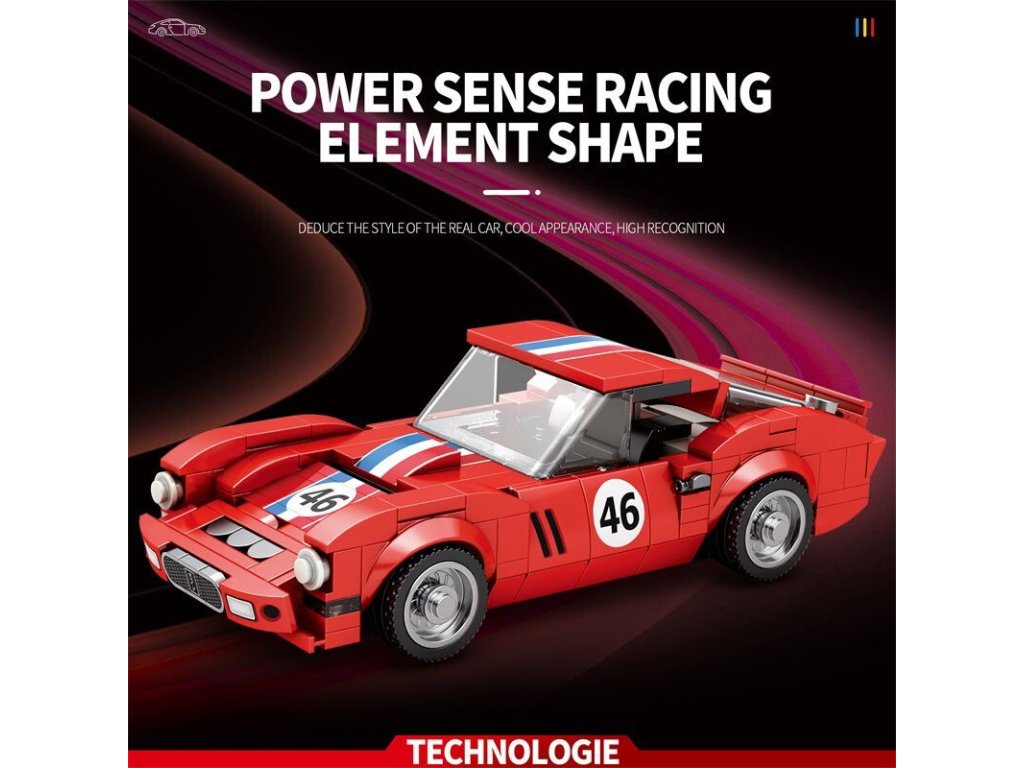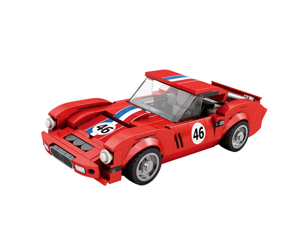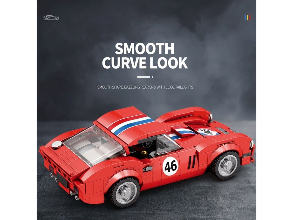 Charakteristická červená karoséria s pruhmi a číslom 46 evokuje atmosféru klasických závodov, kde rozhodovala rýchlosť, odvaha a precíznosť. Vďaka realistickým detailom, hladkým krivkám a premyslenej konštrukcii si túto stavebnicu užijú fanúšikovia klasických vozidiel aj technických modelov.