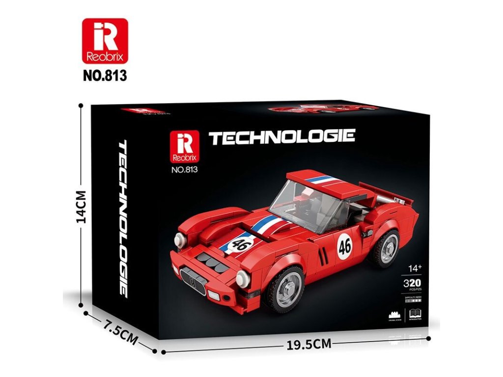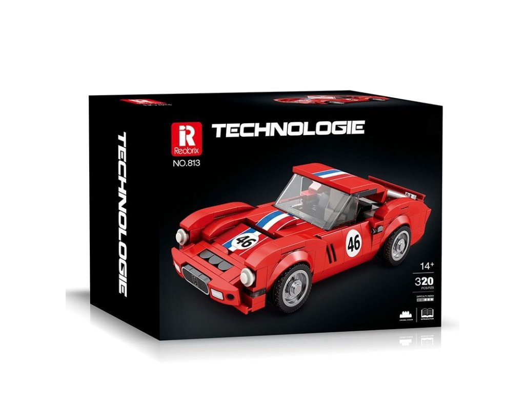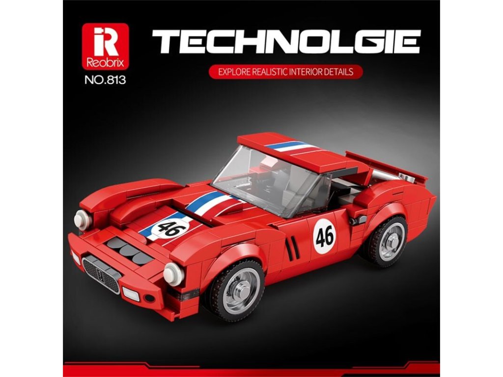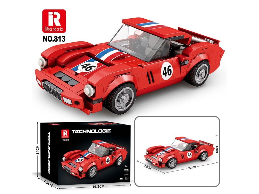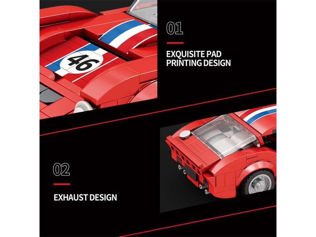 Charakteristická červená karoséria s pruhmi a číslom 46 evokuje atmosféru klasických závodov, kde rozhodovala rýchlosť, odvaha a precíznosť. Vďaka realistickým detailom, hladkým krivkám a premyslenej konštrukcii si túto stavebnicu užijú fanúšikovia klasických vozidiel aj technických modelov.