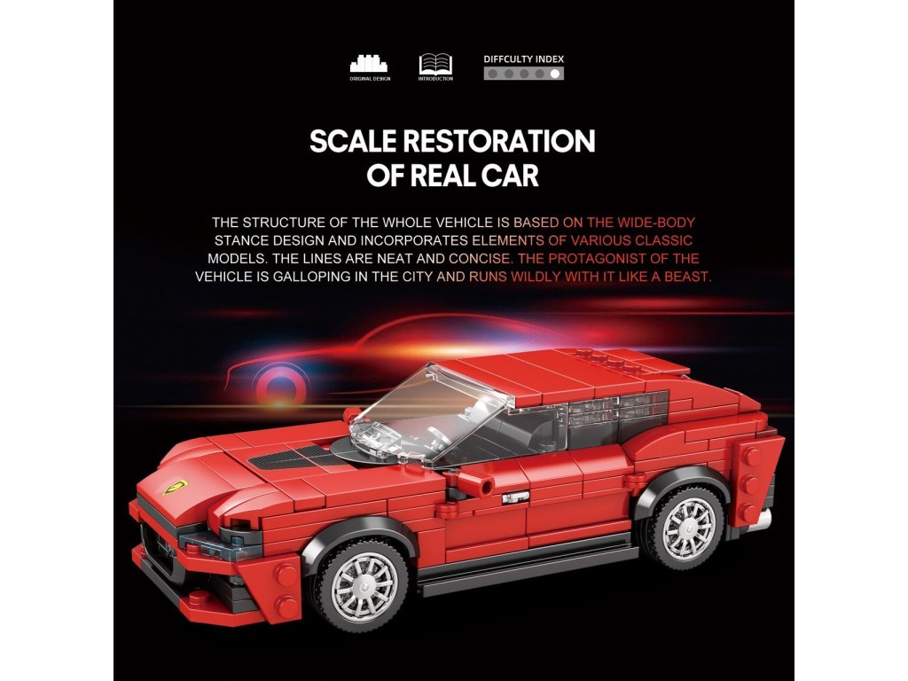 Postavte si športovú ikonu, ktorá vyniká eleganciou aj silou! Stavebnica Ferrari Purosangue od značky Reobrix zaujme detailným spracovaním a realistickými líniami inšpirovanými skutočným vozidlom.