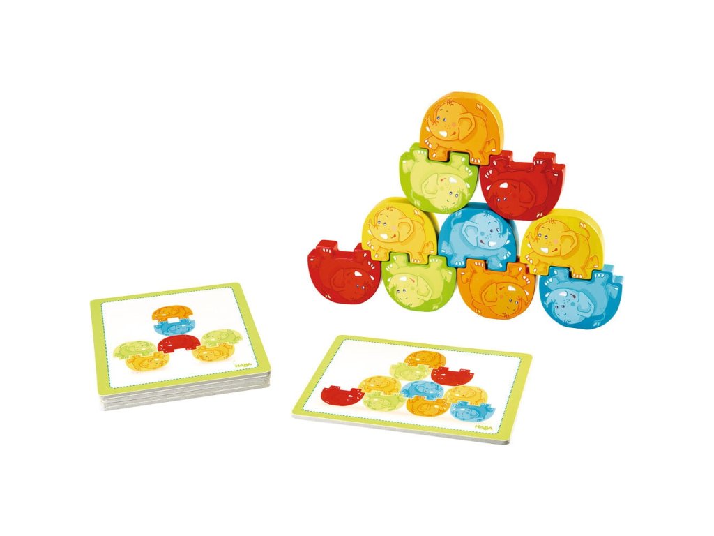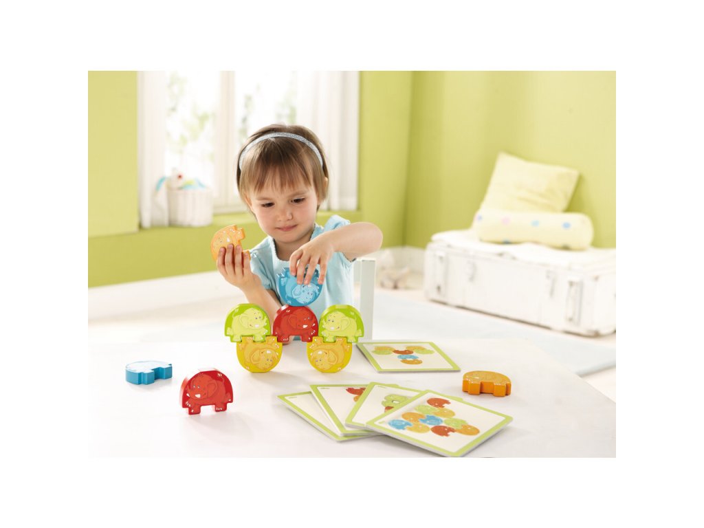 Motorická balančná hra – Sloníková veža je zábavná a poučná hračka pre deti od 2 rokov. Hra rozvíja jemnú motoriku, koordináciu pohybov, trpezlivosť a predstavivosť. Deti sa snažia poskladať sloníkov do veže tak, aby nespadli – podľa priložených šablón alebo vlastnej fantázie.