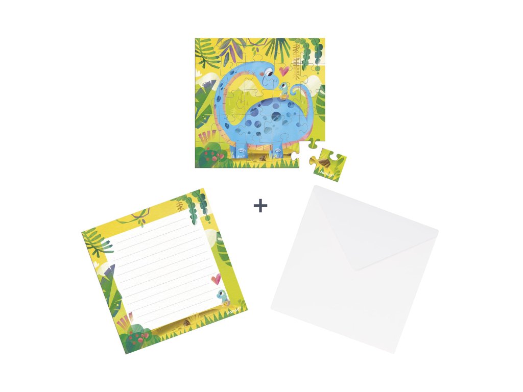 Blahoželanie k narodeninám s puzzle Mama a baby Dinosaurus