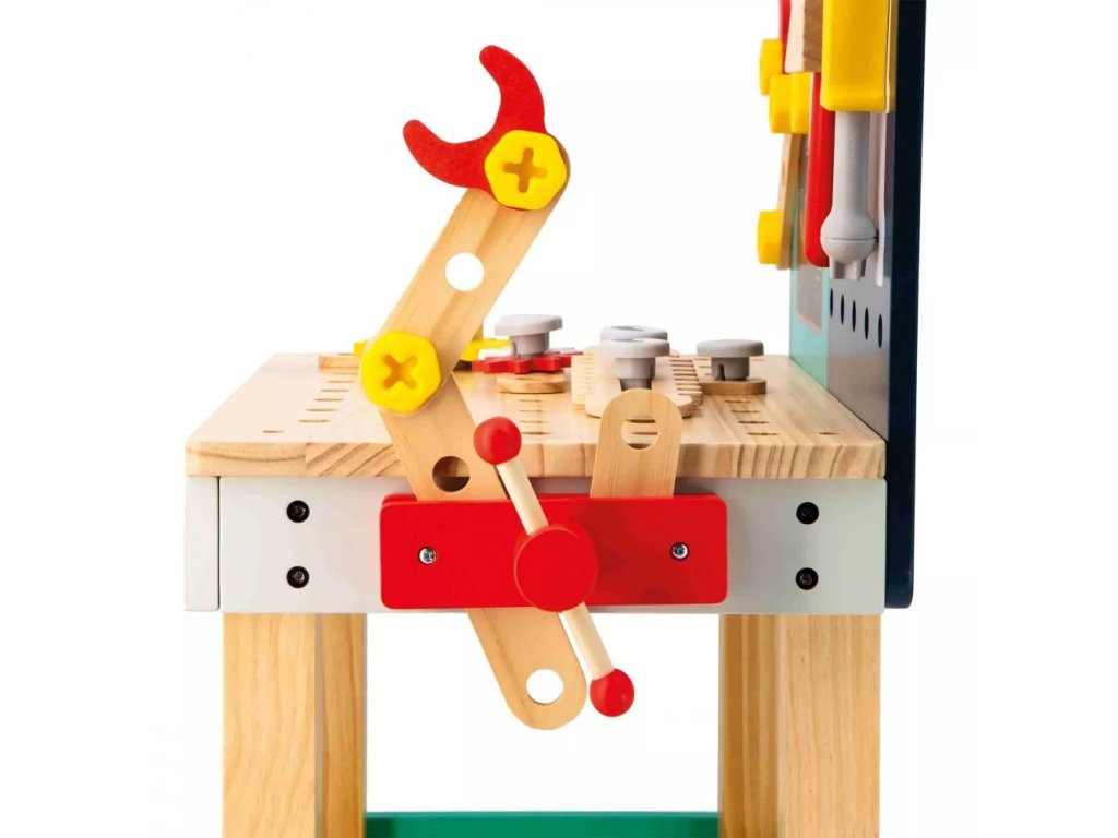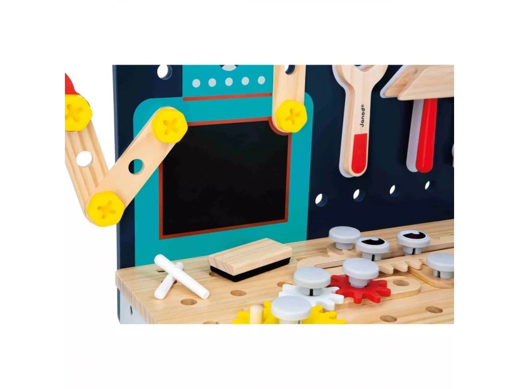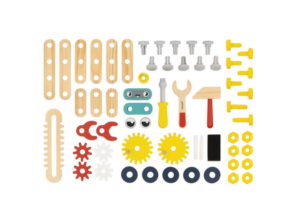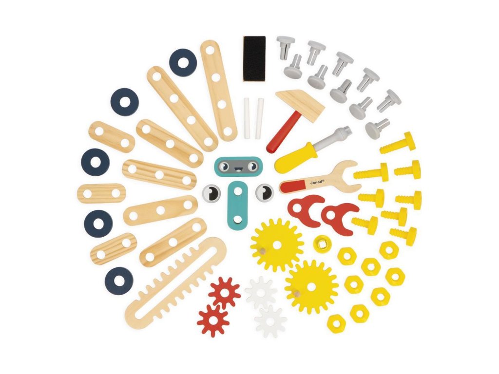 Deti majú k dispozícii bohaté príslušenstvo z dreva aj plastu, ktoré im umožní zostavovať, skrutkovať, opravovať a vymýšľať vlastné konštrukcie. Pomocou modelovej kartičky si môžu jednoducho poskladať aj malého mobilného robota. Pracovný stôl má nastaviteľnú výšku vďaka odnímateľným nožičkám, takže rastie spolu s dieťaťom.