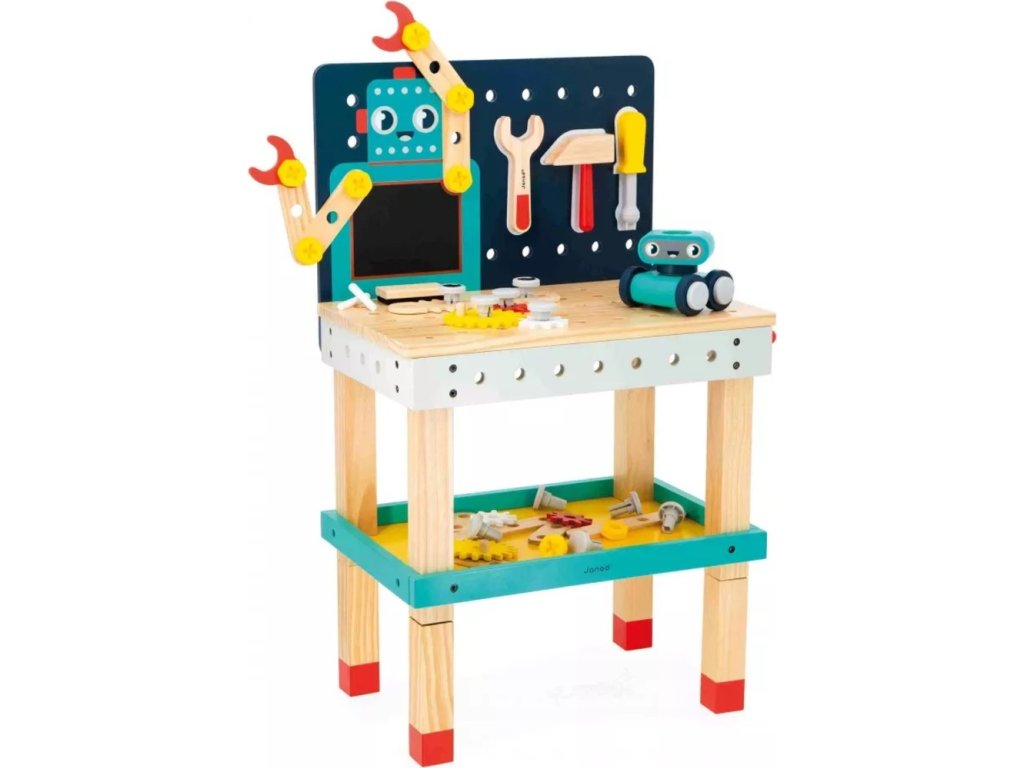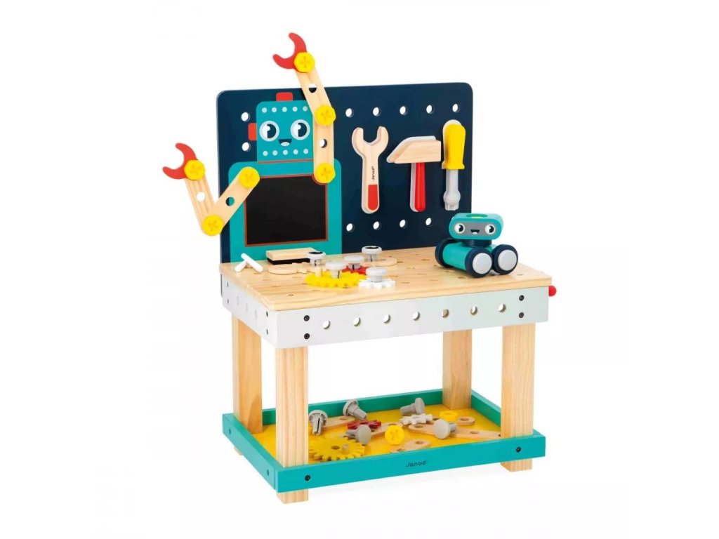 Veľký robotický pracovný stôl Brico'Kids – Janod (3+)Zoznámte sa s veľkým robotickým pracovným stolom z kolekcie Brico'Kids od značky Janod! Tento originálny pracovný stôl premení každé dieťa na malého majstra konštruktéra. Stačí zostaviť ramená robota a dobrodružstvo sa môže začať. Hračka podporuje kreativitu, jemnú motoriku, logické myslenie a dlhé hodiny tvorivej hry.