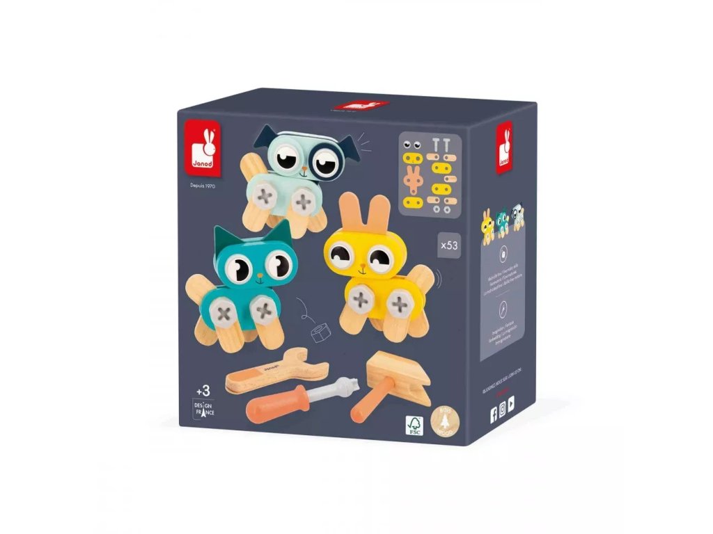 Zvieratká je možné zostaviť aj súčasne, čo umožňuje spoločnú hru viacerých detí. Hračka je vyrobená z kvalitného FSC™ certifikovaného dreva a odolných materiálov, ktoré zaručujú bezpečnosť, dlhú životnosť a ekologický prístup.