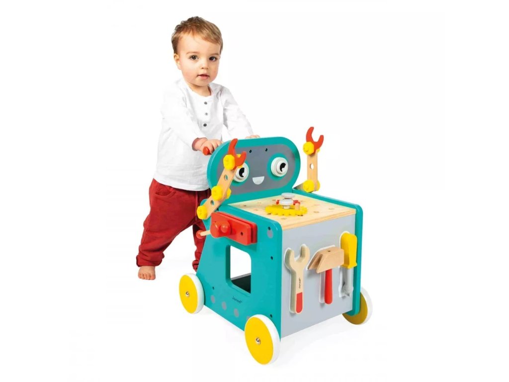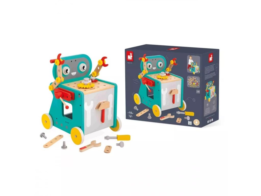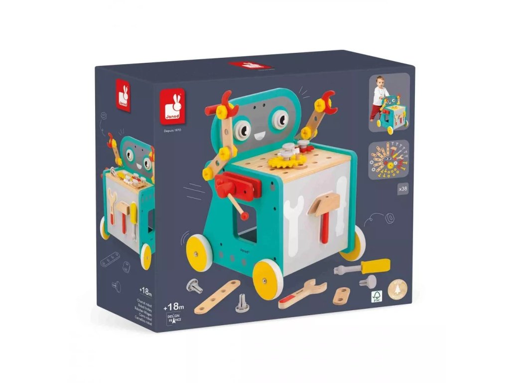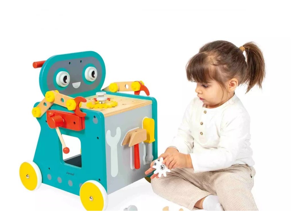 Robotický vozík 2 v 1 Brico'Kids – Janod (18+ mesiacov)Potešujúci a veľmi priateľský robotický vozík z kolekcie Brico'Kids od značky Janod ponúka kombináciu pohybu a kreatívnej konštrukčnej hry. Tento DIY vozík umožní deťom pracovať a hrať sa po celom dome – zároveň rozvíja prvé kroky a jemnú motoriku.