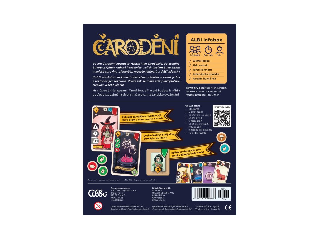 Ponorte sa do sveta mágie! V rodinnej hre Čarodění povediete vlastný klan čarodejníc a prijímate nadané kúzelníčky. Získavajte magické suroviny, predmety, recepty lektvarov a rozširujte svoj klan!