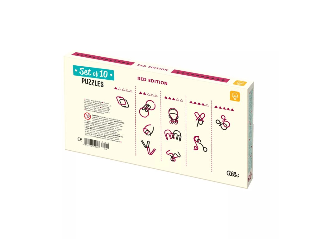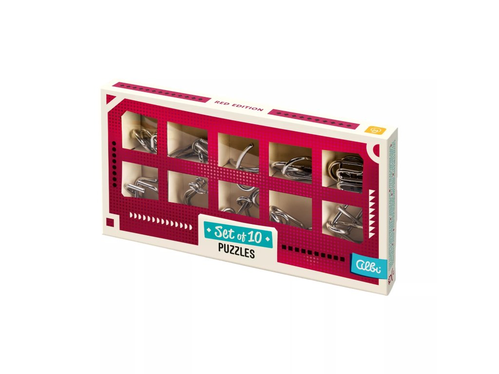 Červená sada 10 hlavolamov obsahuje 10 rôznych kovových hlavolamov, ktoré zabavia na dlhé hodiny. Potrápte si mozgové závity a užite si výzvu!