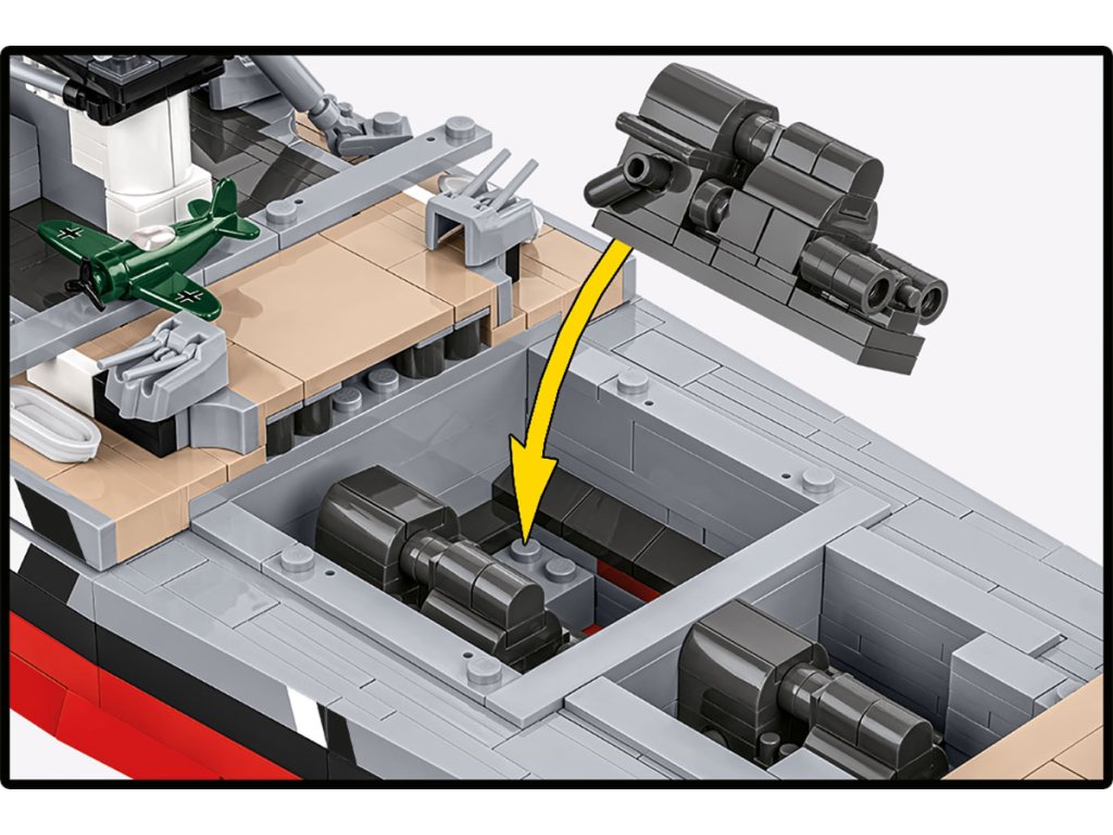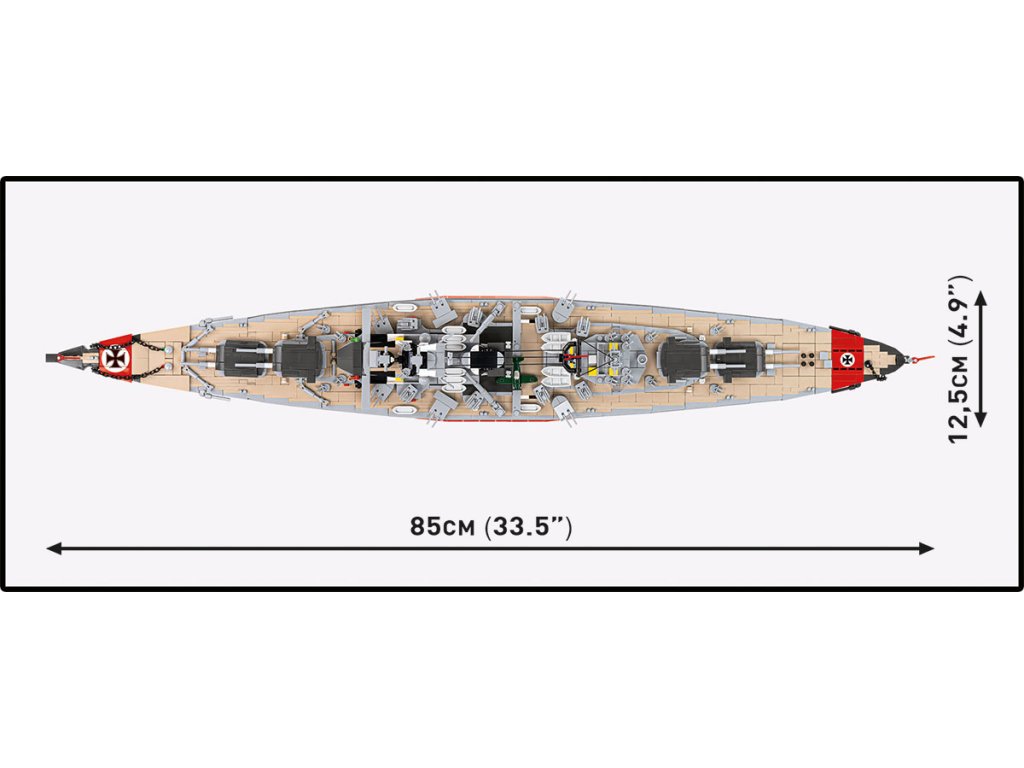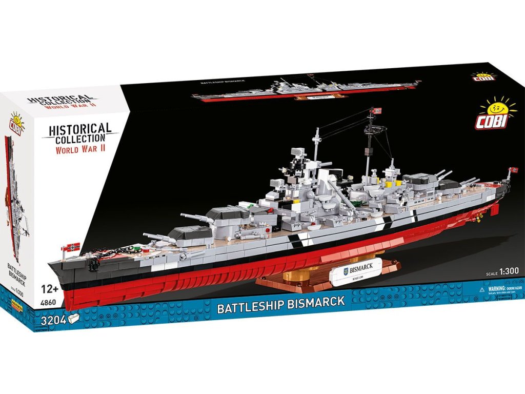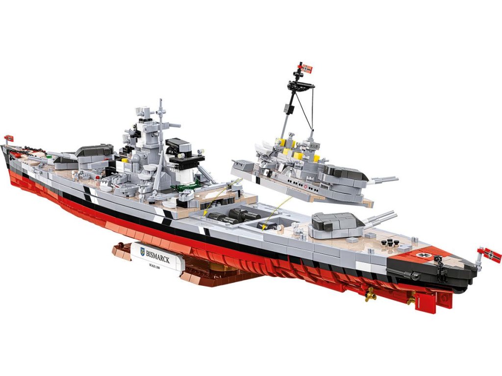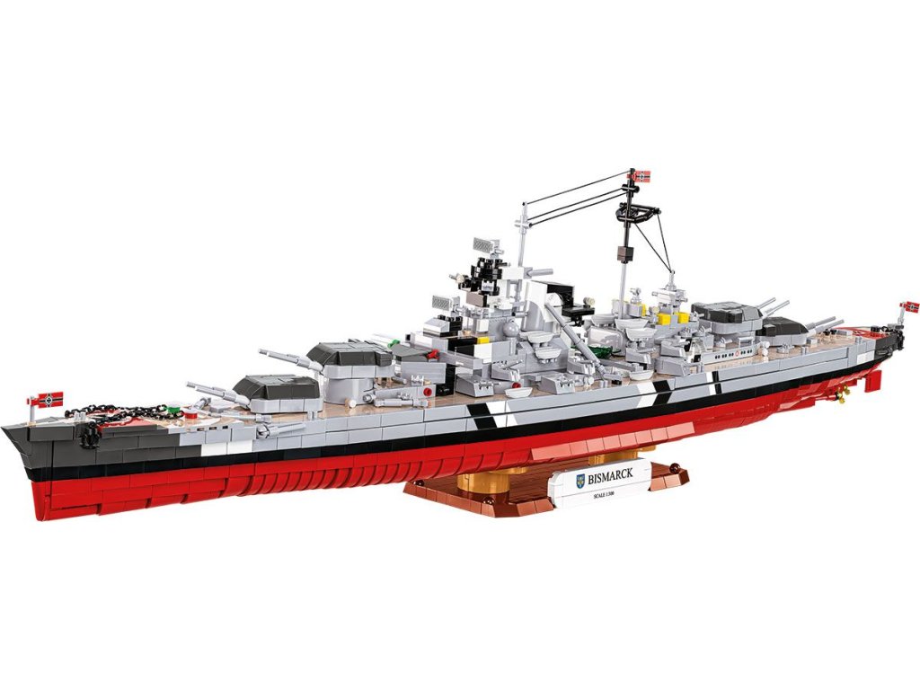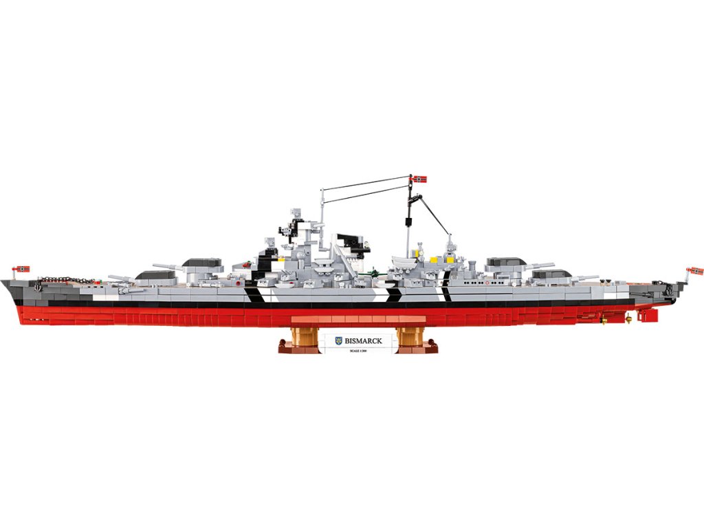 Náš model bojovej lode Bismarck v mierke 1:300 bol navrhnutý pre tých najnáročnejších zberateľov. 3 204 precízne vyrobených dielikov verne reprodukuje siluetu lode, jej nástavbu, výzbroj aj charakteristické proporcie. Rozmery hotového modelu z neho robia jednu z najpôsobivejších lodných stavebníc v ponuke COBI v tomto mierke.