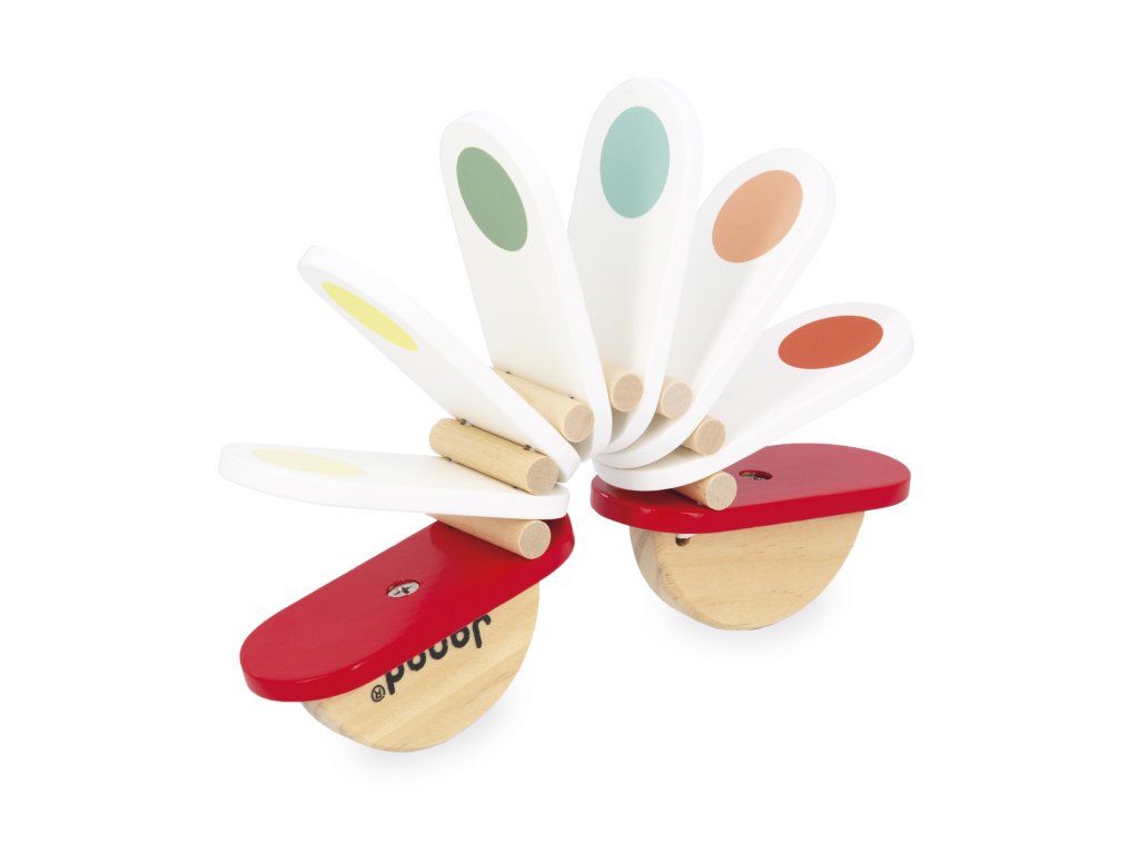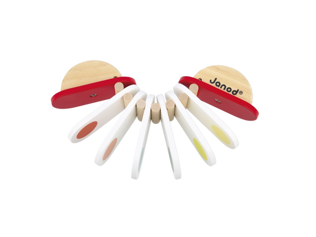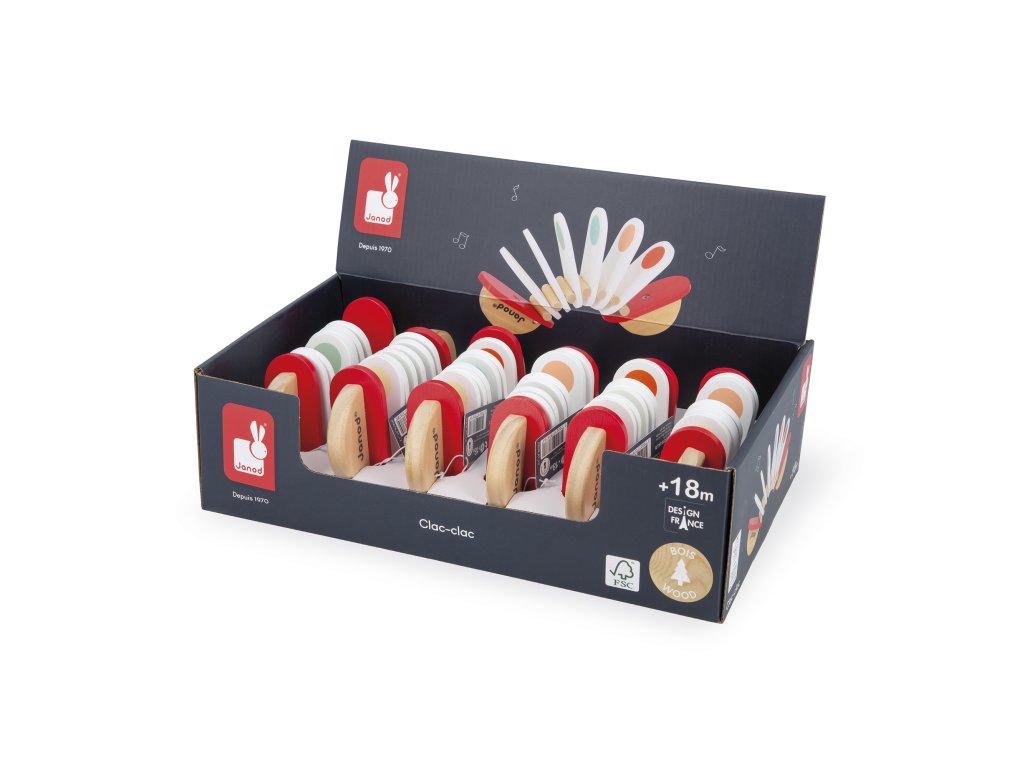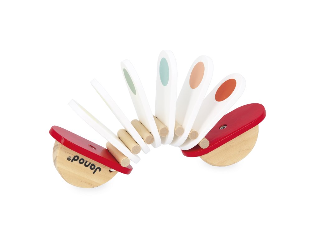 Drevená klapačka Janod – hudobná senzorycka hračka (18+ mesiacov)Aký rytmus! Táto krásna drevená klapačka je ideálna na zoznámenie najmenších s ich prvými zvukovými hrami. Ľahko sa drží a pomáha deťom objavovať zvuky, rytmus a pohyb. Senzorická hračka podporuje rozvoj jemnej motoriky, koordinácie a hudobného vnímania.