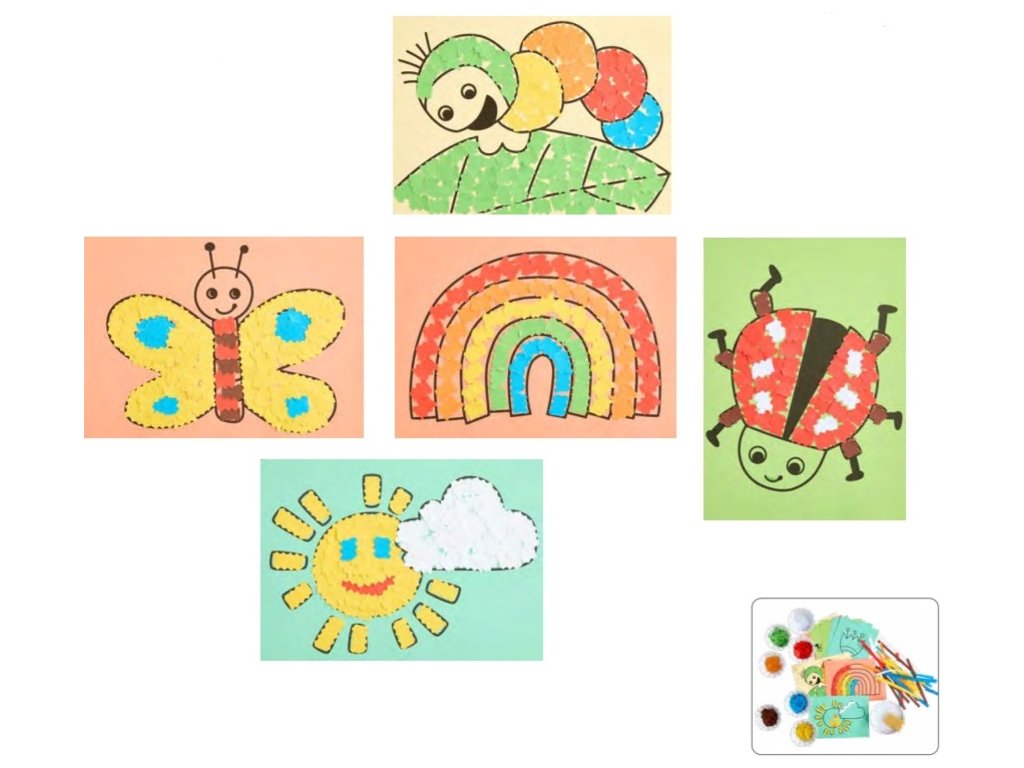 Kreatívna sada Janod – tvorenie obrázkov lepením s motívom jari a prírodyKreatívna sada na vytvorenie obrázkov lepením s motívom jari a prírody je ideálna pre väčší kolektív aj do materských škôl. Deti získajú svoje prvé kreatívne skúsenosti prostredníctvom hry, rozvíjajú jemné motorické zručnosti, koordináciu oko-ruka a koncentráciu. Sada obsahuje ľahko zrozumiteľné obrázkové pokyny, ktoré uľahčia prácu aj tým najmenším.