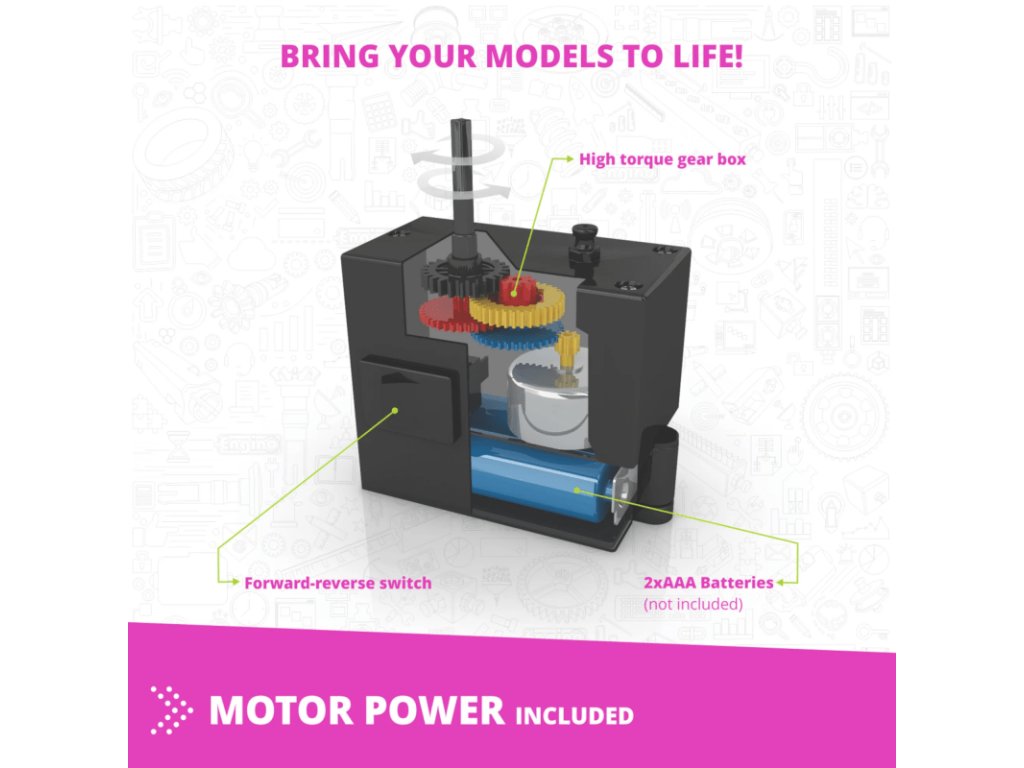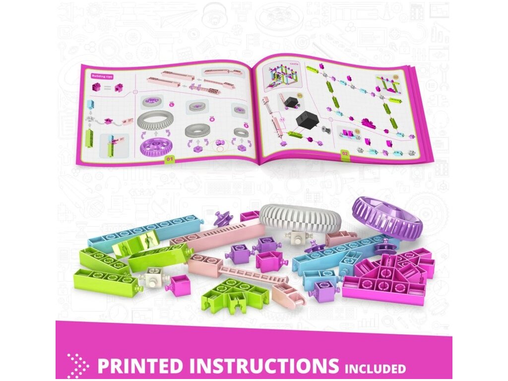Živé farby fialovej, fuchsiovej, svetlozelenej a nebesky modrej okamžite upútajú pozornosť a povzbudia deti, aby preskúmali svoju tvorivú stránku. Stavanie modelov im umožní rozvíjať priestorovú predstavivosť a technické zručnosti hravou formou.