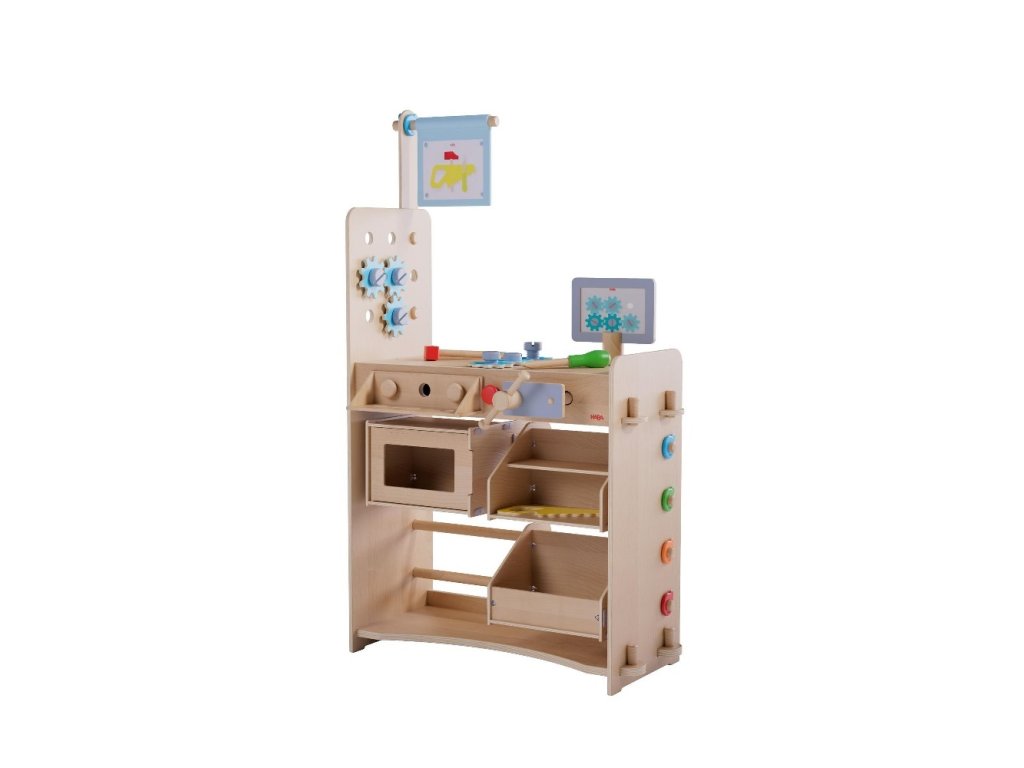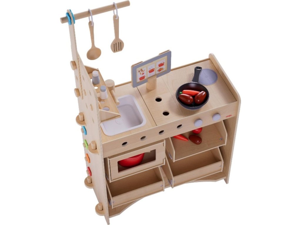 Creative Play 3v1 – Transformovateľná hra od HABADnes sa hrám na Michelinského kuchára, zajtra na obchod a pozajtra na dielňu! Creative Play 3v1 kombinuje tri témy na hranie rolí a ponúka skvelú zábavu aj na menšom priestore. Modulárny herný systém umožňuje deťom jednoducho prestavovať hru a vstúpiť do rôznych rolí – všetko zvládnu detskými krokmi! Atraktívne a dobre premyslené vybavenie prináša nekonečné možnosti hrania.