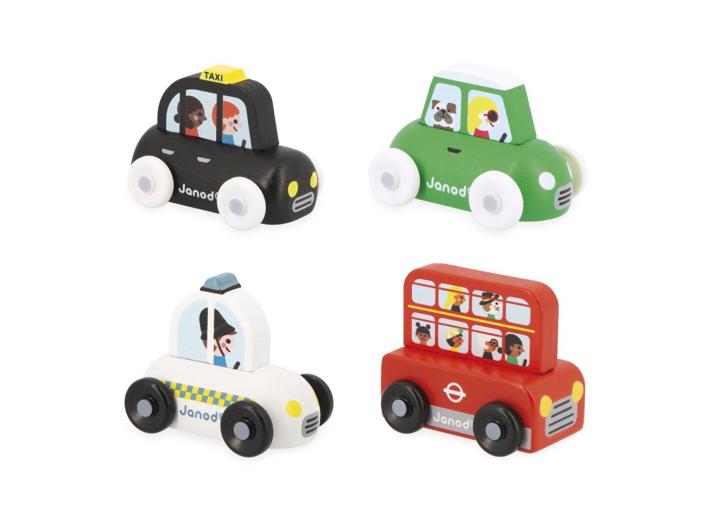 Zberateľské vozidlá Veľká Británia – JanodVydejte sa na výlet do Veľkej Británie so štyrmi rozkošnými zberateľskými vozidlami! Táto kolekcia obsahuje: