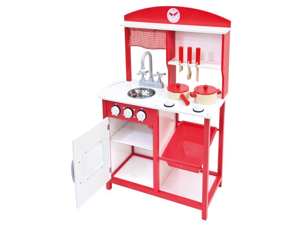 Je vybavená drezom, sporákom a rúrou, vďaka čomu deti môžu napodobňovať každodenné kuchynské činnosti. Súčasťou je aj prepravka, ktorá slúži ako praktický úložný priestor na hračky v podobe potravín, ako je zelenina či ovocie. Nad drezom sa nachádza dekoratívny záves, ktorý dotvára príjemný vzhľad kuchynky.