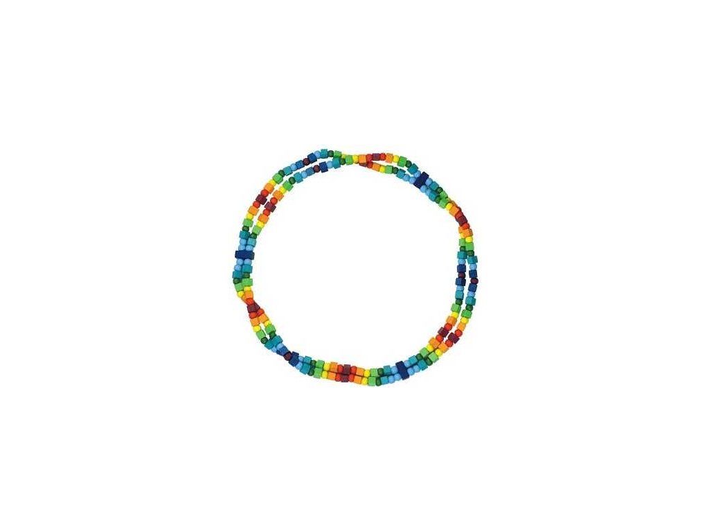 Detská bižutéria z drevených perličiek v krásnom dúhovom prevedení prináša radosť z farieb a hravého doplnku pre malé deti.