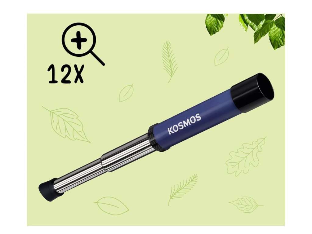 Či už pri mori, v lese, v parku, ako pirát alebo hľadač pokladov, robustný ďalekohľad je dokonalým spoločníkom! Detský ďalekohľad Kosmos sa dá ľahko a presne nastaviť a má mäkkú očnicu, vďaka čomu je pre deti obzvlášť jednoduché pozorovať zvieratá alebo hľadať Mesiac a planéty na oblohe. Vďaka kovovému tubusu je ďalekohľad robustný a odolný. Keďže je tiež veľmi ľahký (hmotnosť 300 g), stane sa perfektným spoločníkom na výlety, dovolenku, pozorovanie prírody alebo hranie rolí.